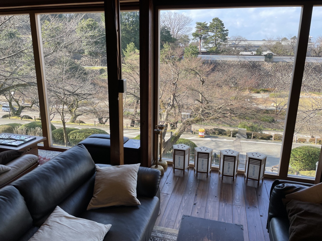 そして、ガラス張りの窓からは、金沢城を一望することができ、景色抜群!