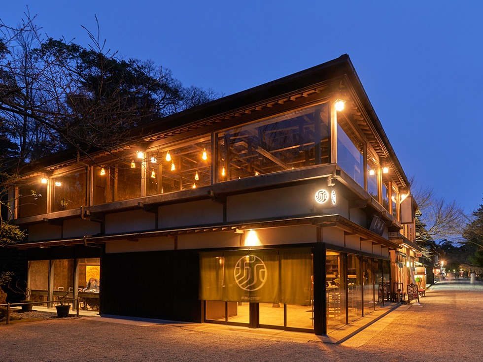2019年11月、世界的な建築家・隈研吾氏の手で生まれ変わった「見城亭」。2階は金沢城石川門を臨む和食処、1階はカフェです。