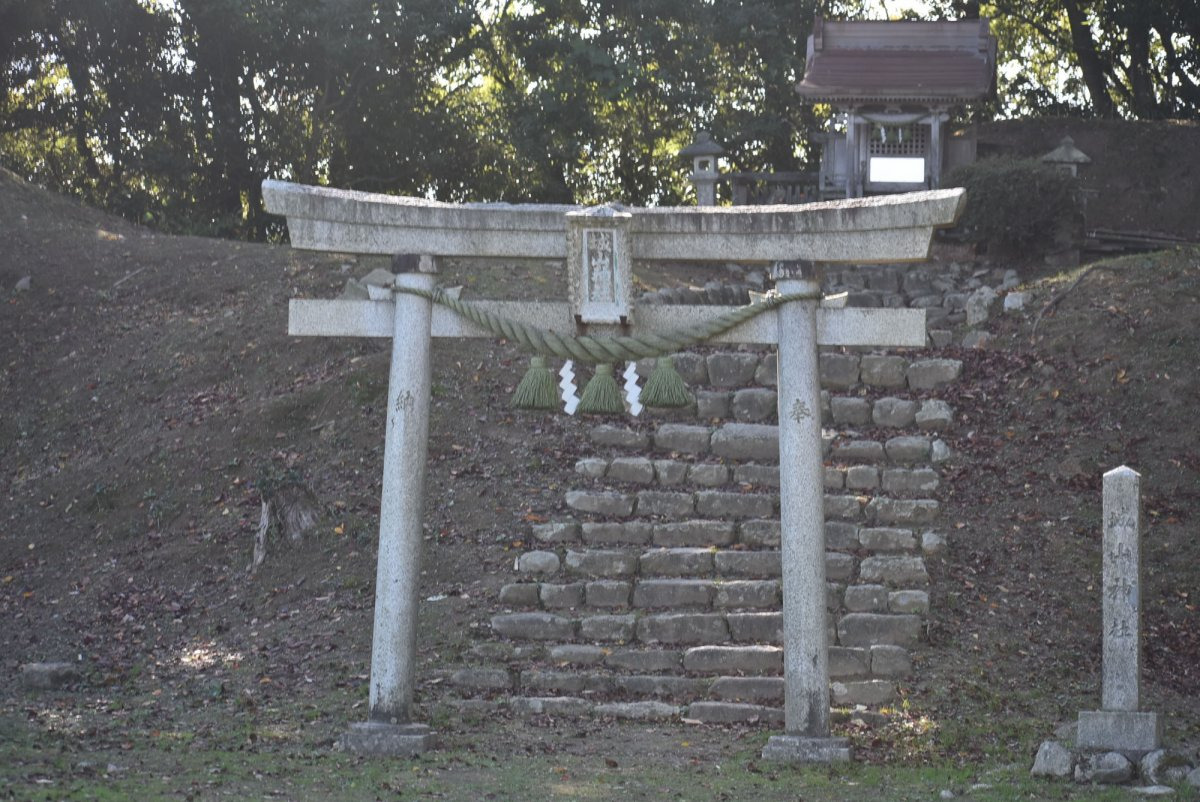標高305メートルにあるのが七尾城本丸跡で、そこには城址碑や案内板、城山神社があります。