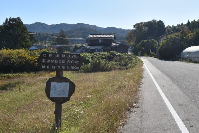 七尾城跡の麓にある七尾城史資料館の向かいに、トイレや観光案内がある七尾城登山口駐車場があるので、体力に自信がある人は麓から挑戦してみましょう。
