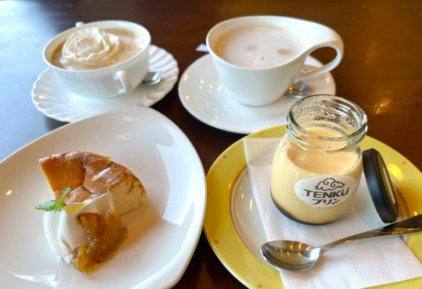 今回はその中でも定番のカスタードプリンを注文、他にも昔から人気のチーズケーキも頼みました。