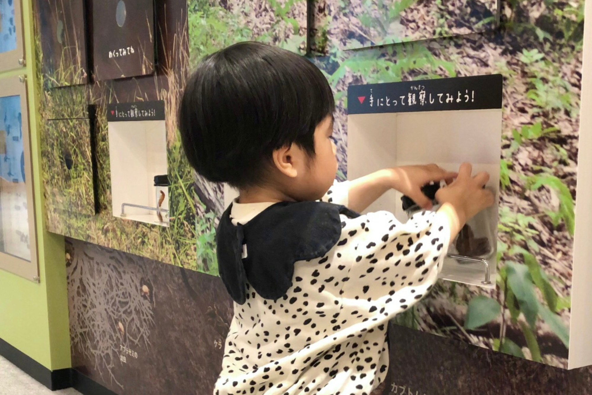展示物がこどもの目線に合わせた高さになっているので、パパママは抱き上げなくていいから楽ちん♩ 昆虫と直接ふれあえる教室なども開催されていて、こちらも親子連れに人気のようです。