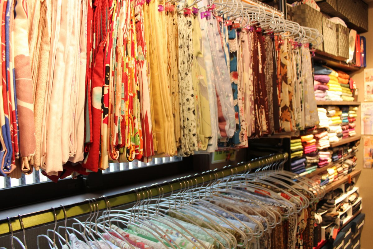 店内に入ると色とりどりの着物がズラリ!茶屋街の和の街並みにピッタリなアンティークなものから、カラフルで写真映えするようなモダンなものまで、様々な種類の着物があるので、街を歩いていて他の人と被る心配もありません!