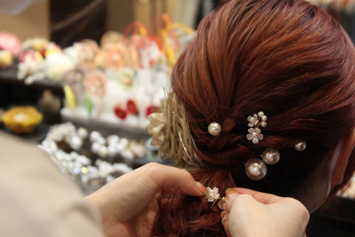 もしも自分に似合う髪型がわからなくても、お店の方が似合う髪型をおすすめしてくれるのでお任せして大丈夫です!私は水引と真珠で白を基調としたスタイルに仕上げてもらいました!