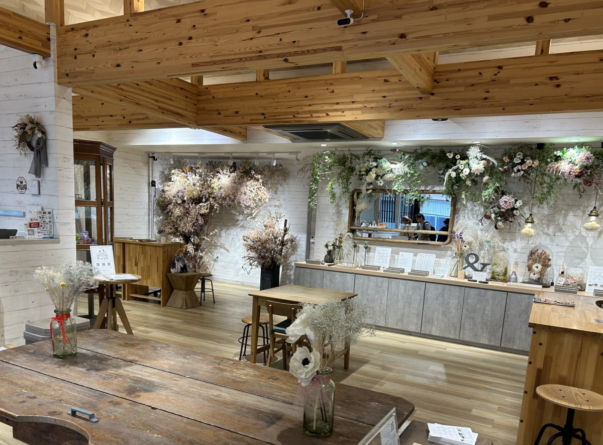 店内は木を基調とした空間にドライフラワーが飾り付けてあり、落ち着いたBGMの中に鉄を打つ音が響いて、とても安らぐことができます。座席は2人席が3つ、4人席が1つで合計4つあり、各席に1人お店の方がついて、指輪の作り方を丁寧に説明してくれます!