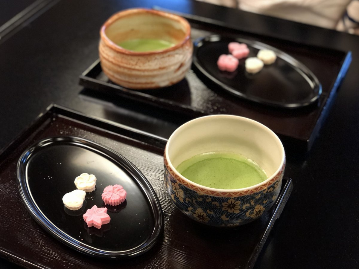 完成した落雁はその場でお店の方が用意してくれた抹茶と一緒にいただきます!食べる分だけをお皿に移し、残りは箱に詰めて持ち帰ることが出来ます。上品な甘さの落雁と少し苦味のある抹茶は相性が抜群でとても美味しかったです!