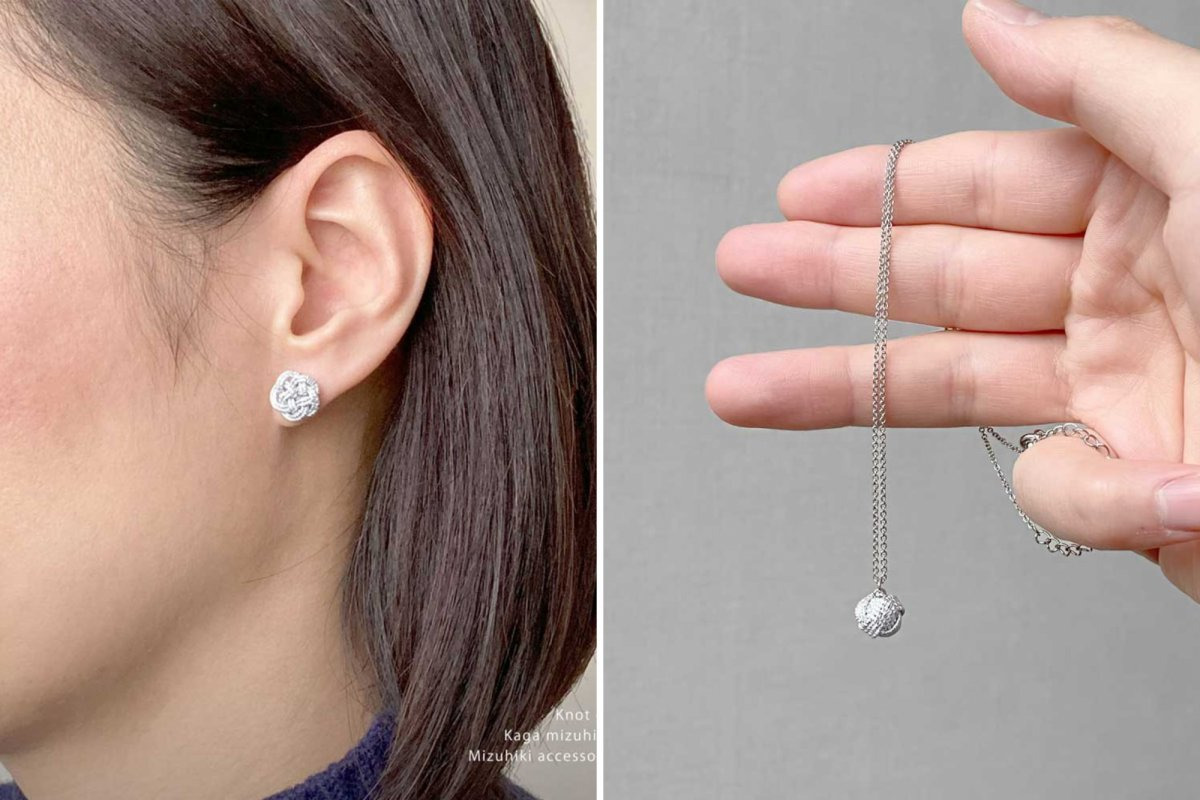 ピアスやネックレスなどのアクセサリーも人気体験の一つです。玉と花のどちらかからモチーフを選んで制作します。ピアスはアレルギーフリー素材の使用も可能で金属アレルギーを持つ人でも安心して作ることができます!水引のユニークさと和をモチーフにしたデザインは顔周りを華やかにします!
