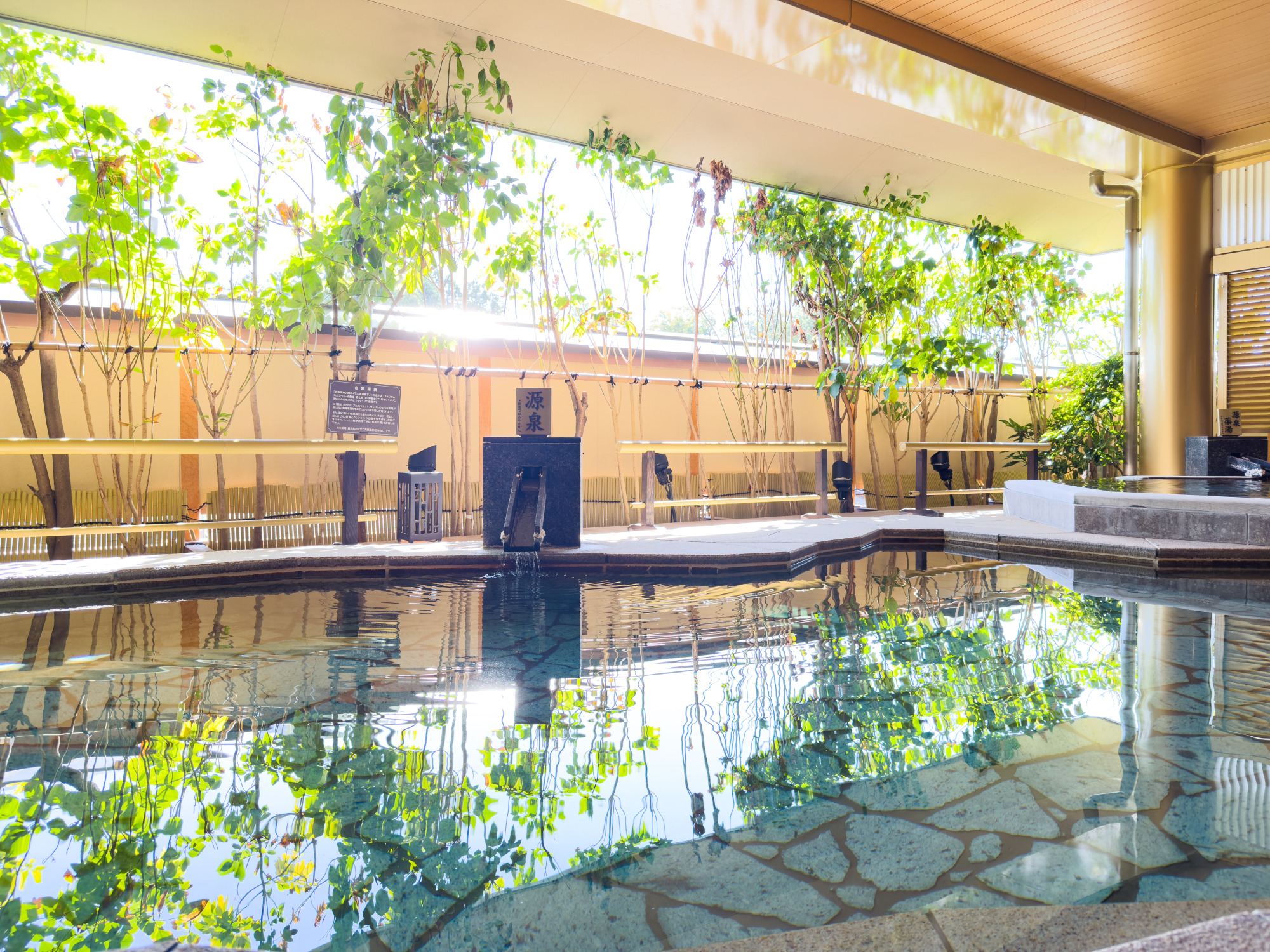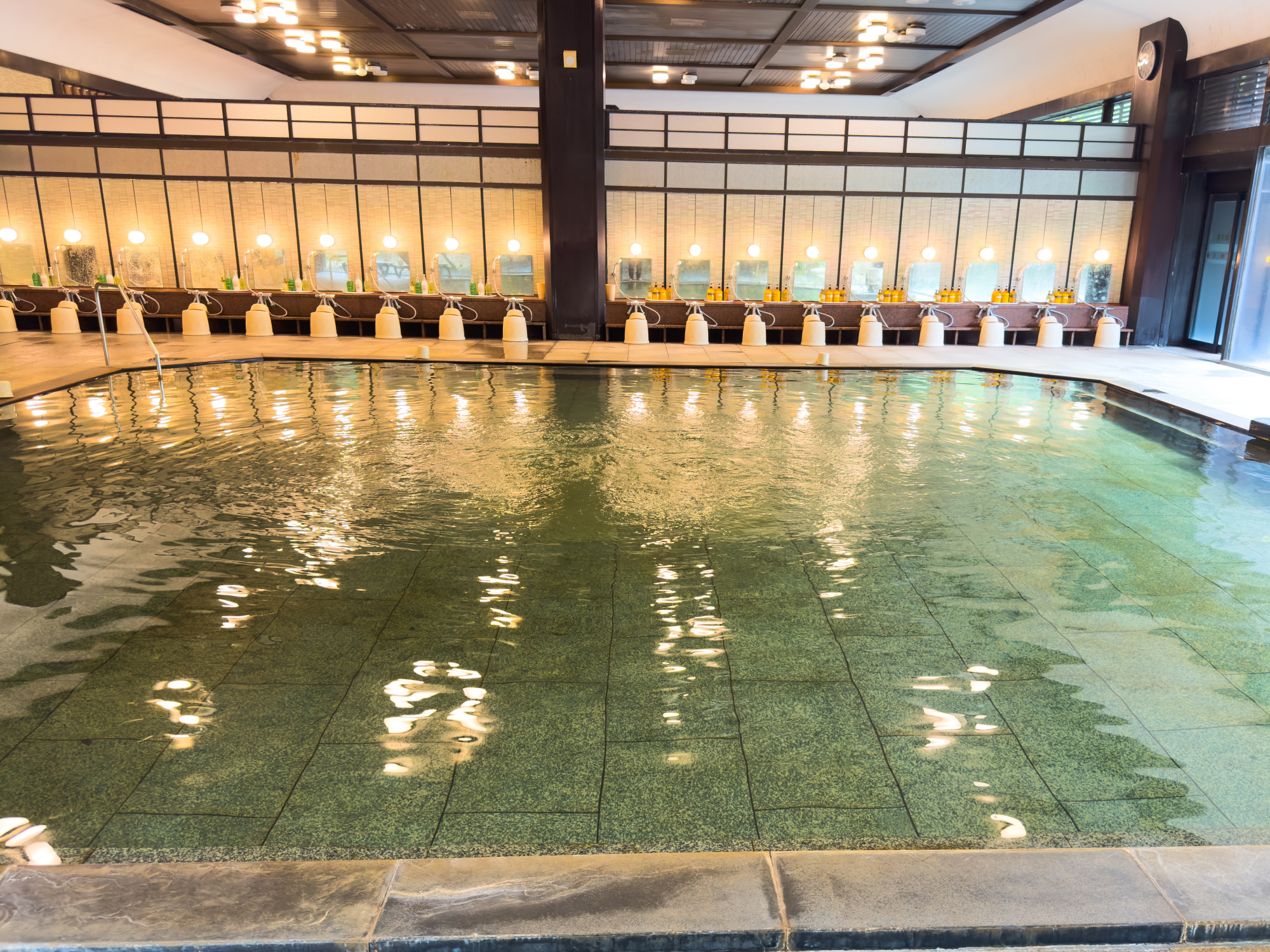 ゆのくに天祥は、広々とした大浴場や開放感あふれる露天風呂をはじめ、かめ風呂や五右衛門風呂などの変わったお風呂も楽しめるお宿です。