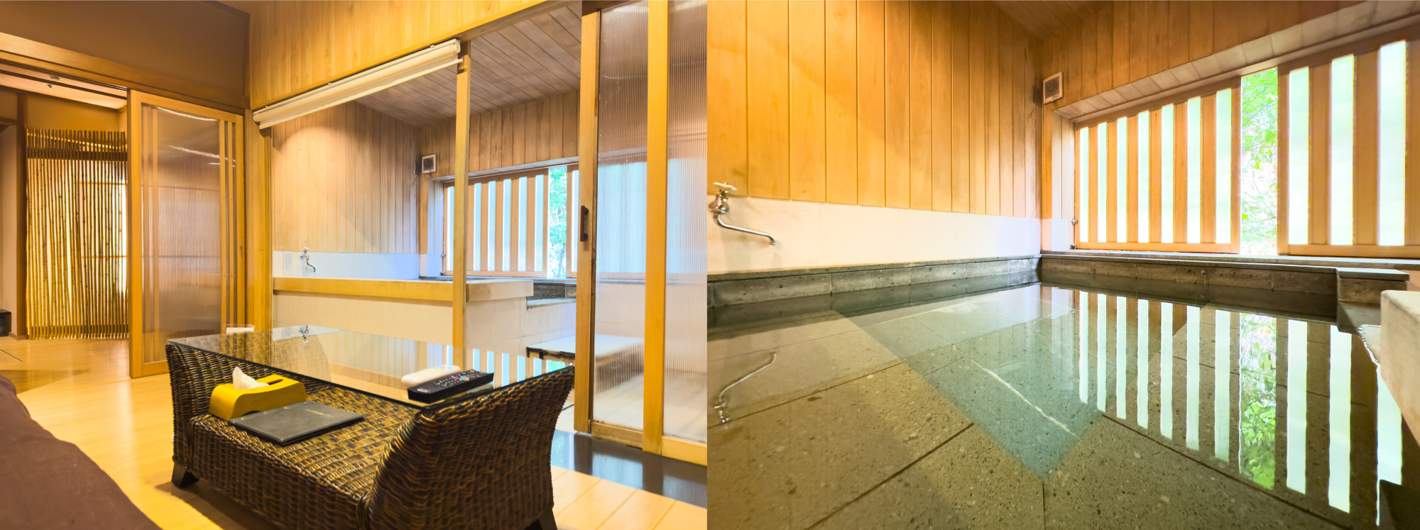 また同館では、誰にも気兼ねすることなくのんびりと温泉を愉しむ源泉かけ流しの貸切風呂を用意。