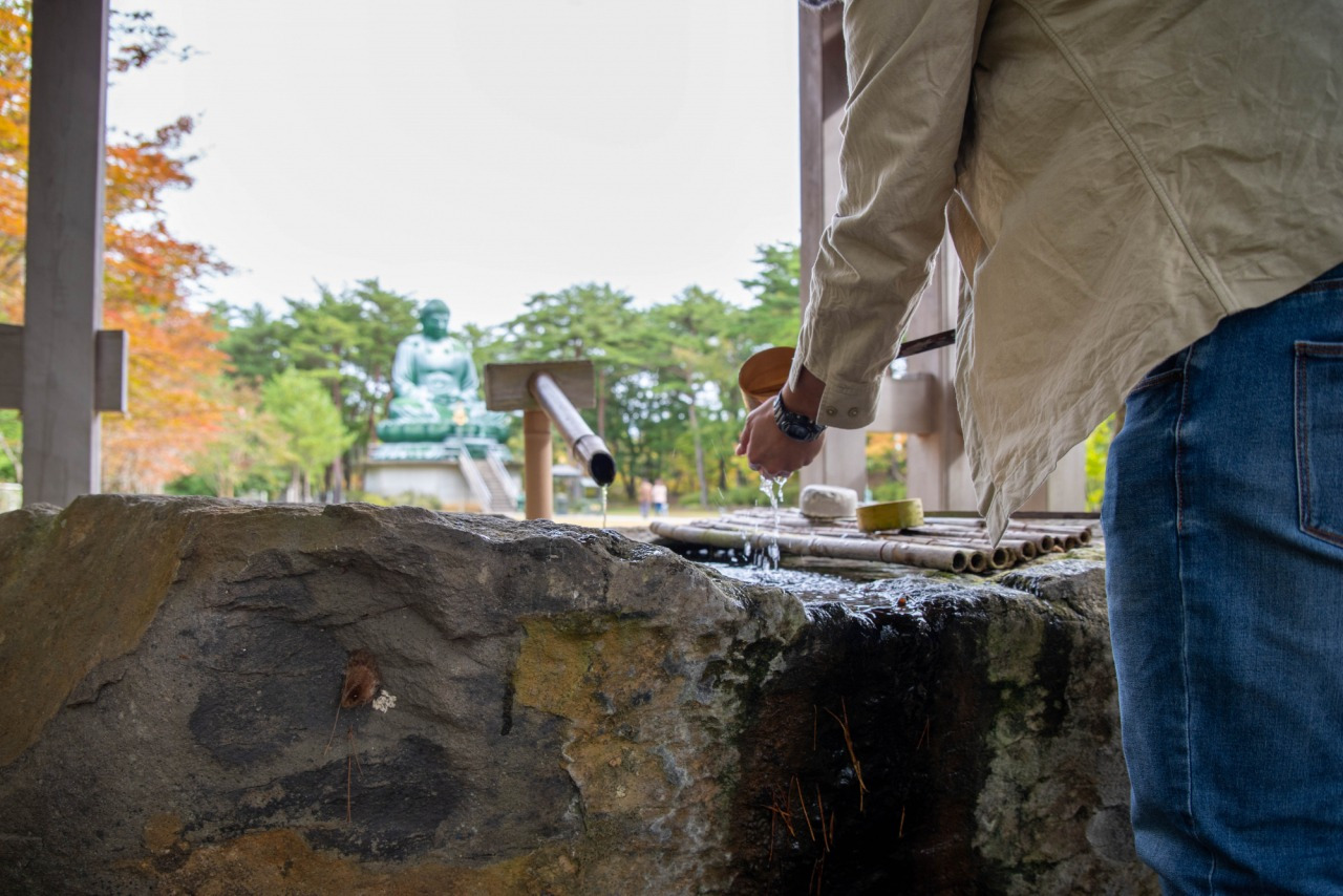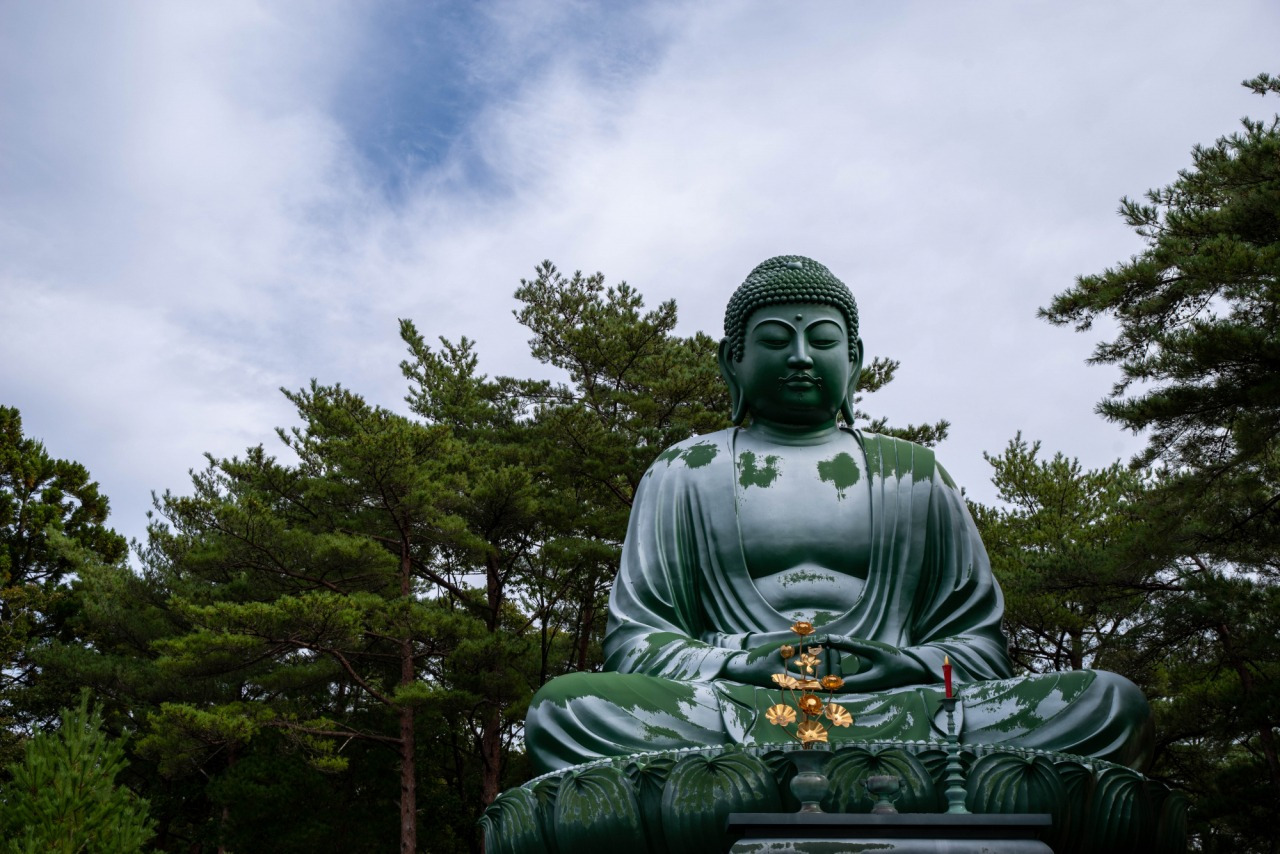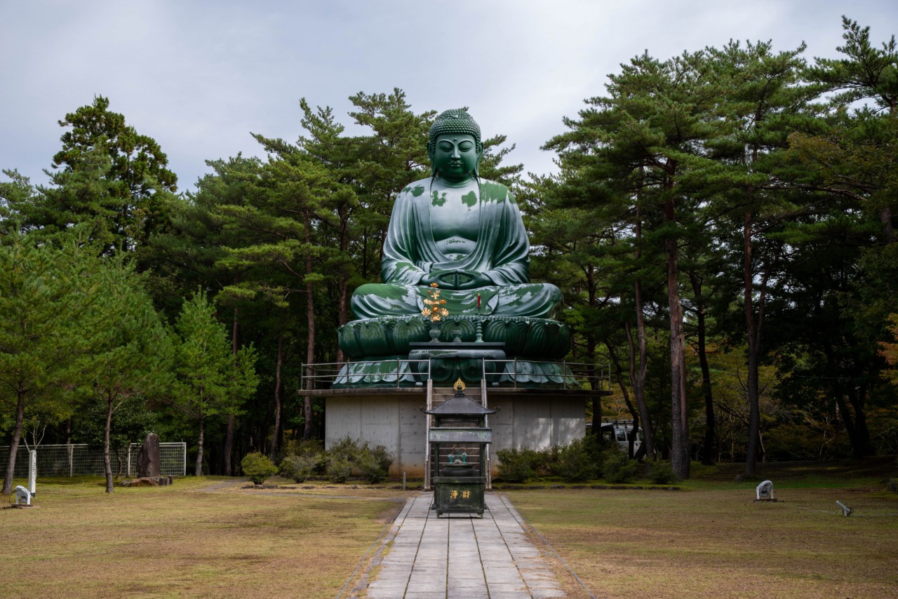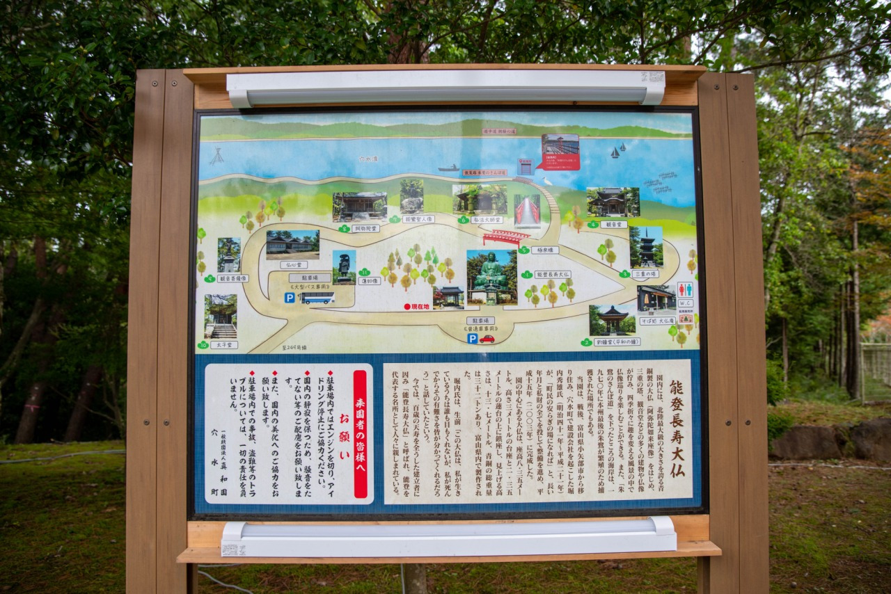 SUPの余韻にどこか後ろ髪を引かれながら、せっかくならと、古民家宿『龍屋』の近くにある「能登長寿大仏」がある真和園へ行くことに。車で7分ほどで行けます。