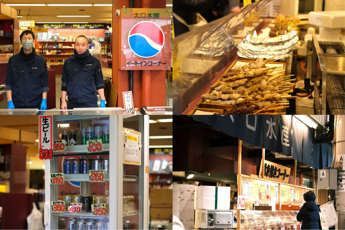 色々買い込んで、奥にあるイートインコーナーで是非お楽しみください。ちなみに、このイートインコーナーは大口水産さんで購入されたものなら、なんでも持ち込み可能です!