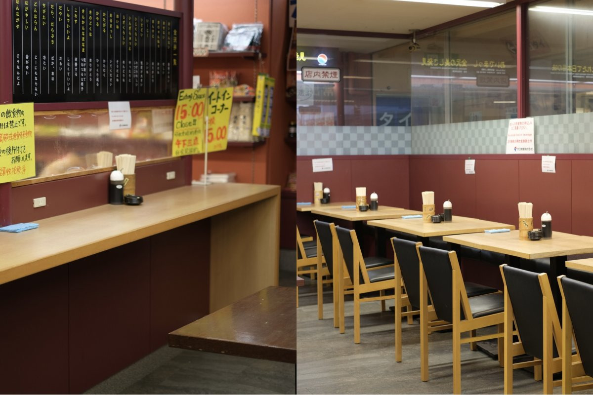 こちらのお店にも、椅子に座って食べられるスペース、そして入り口手前には手作りで全て作られた屋根付きのスタンディングのカウンターもあります。