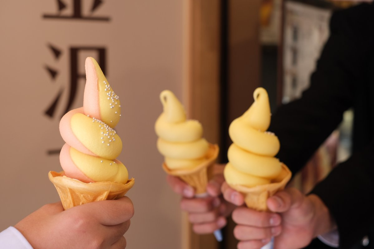プリン以外にも、ソフトクリーム(各400円)もあります!