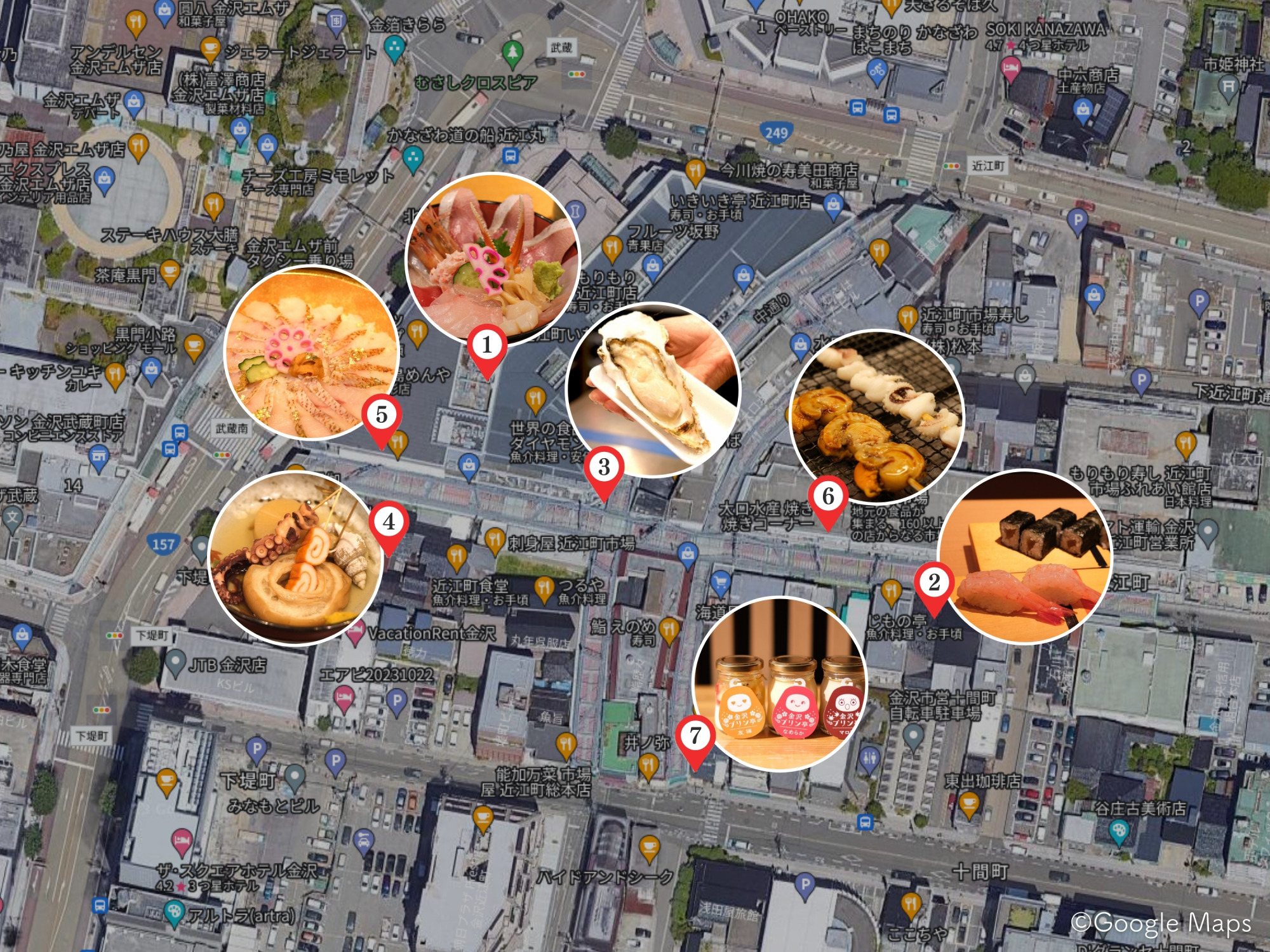今回おすすめした近江町市場のおすすめ店舗は、こちらのマップから見つけていただけます!