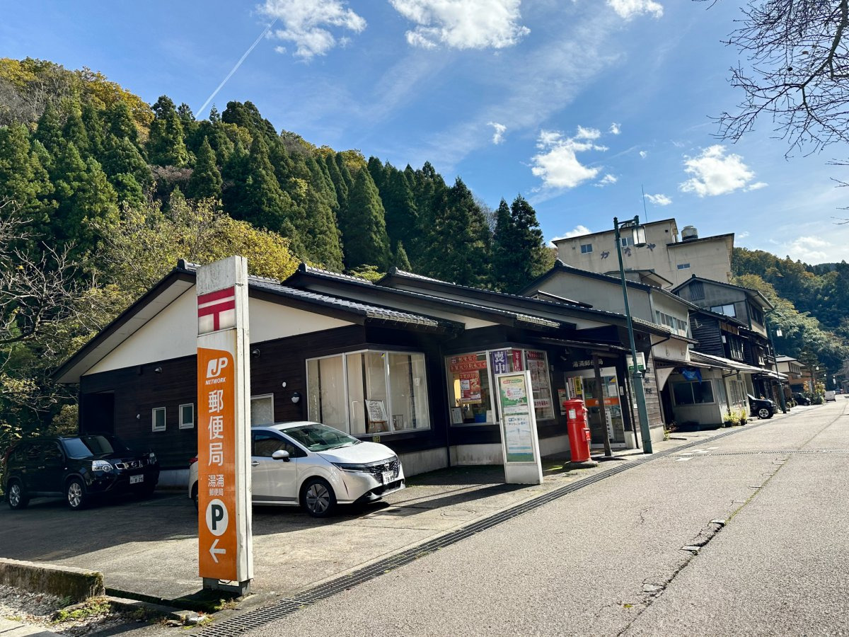 先ほどの福神橋から少し奥に進むと左手に郵便局があります。ここも作中でちょくちょく背景に出てくる場所なので、歩いてるだけでアニメの中に入った気分が味わえますよ!