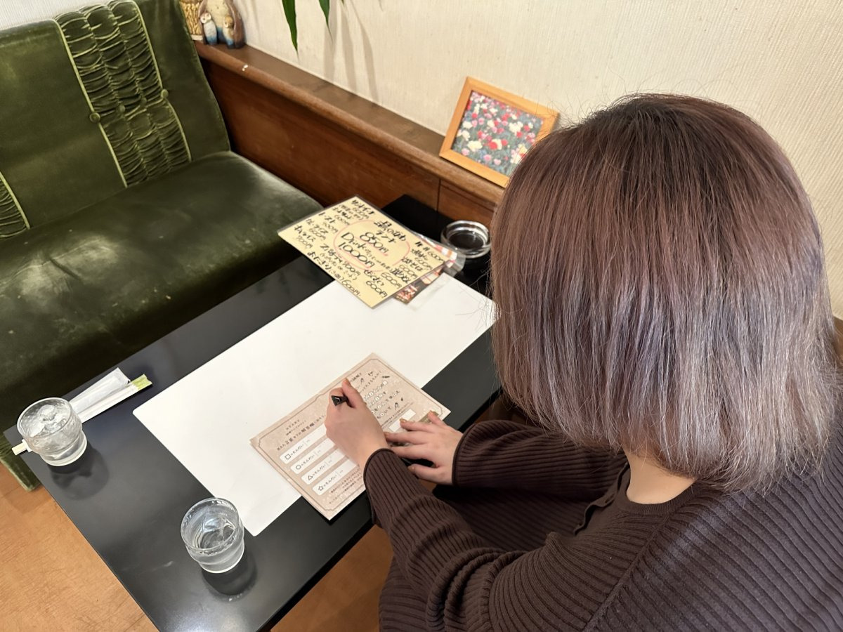 注文をして待っている間に、謎解きの問題と睨めっこ!