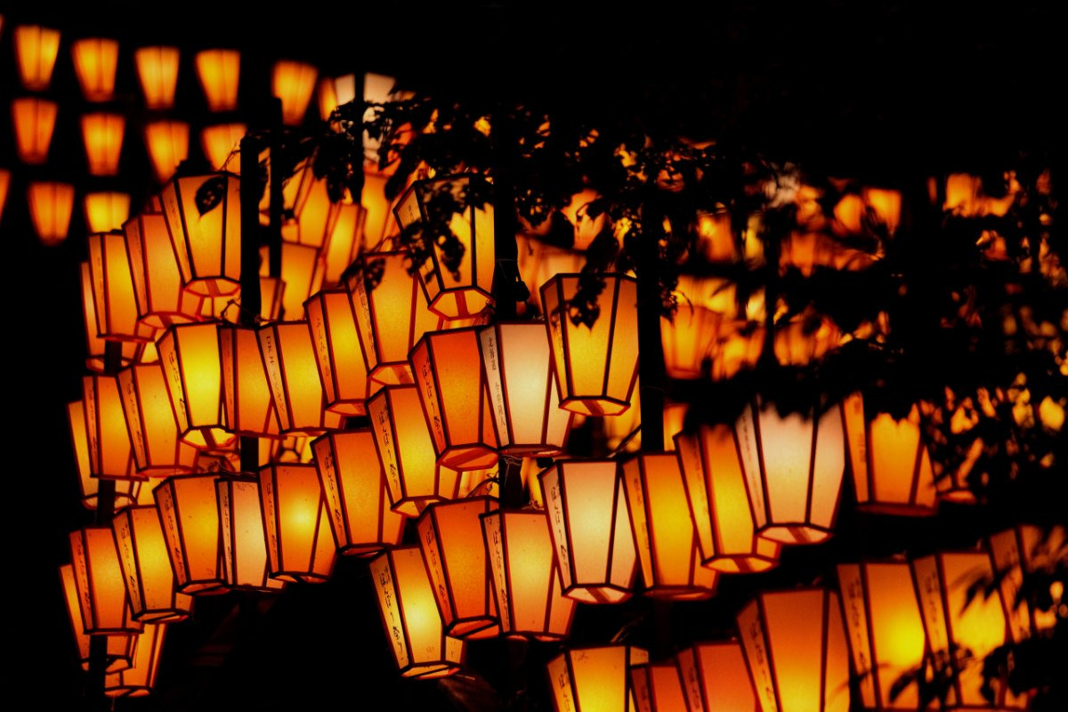 しかしながら、毎年7月中旬からお祭りが終わるまでの間は約300基のぼんぼりを設置しているので、夕方~夜間の散策は当日以外でもその幻想的な雰囲気を楽しむことができます◎