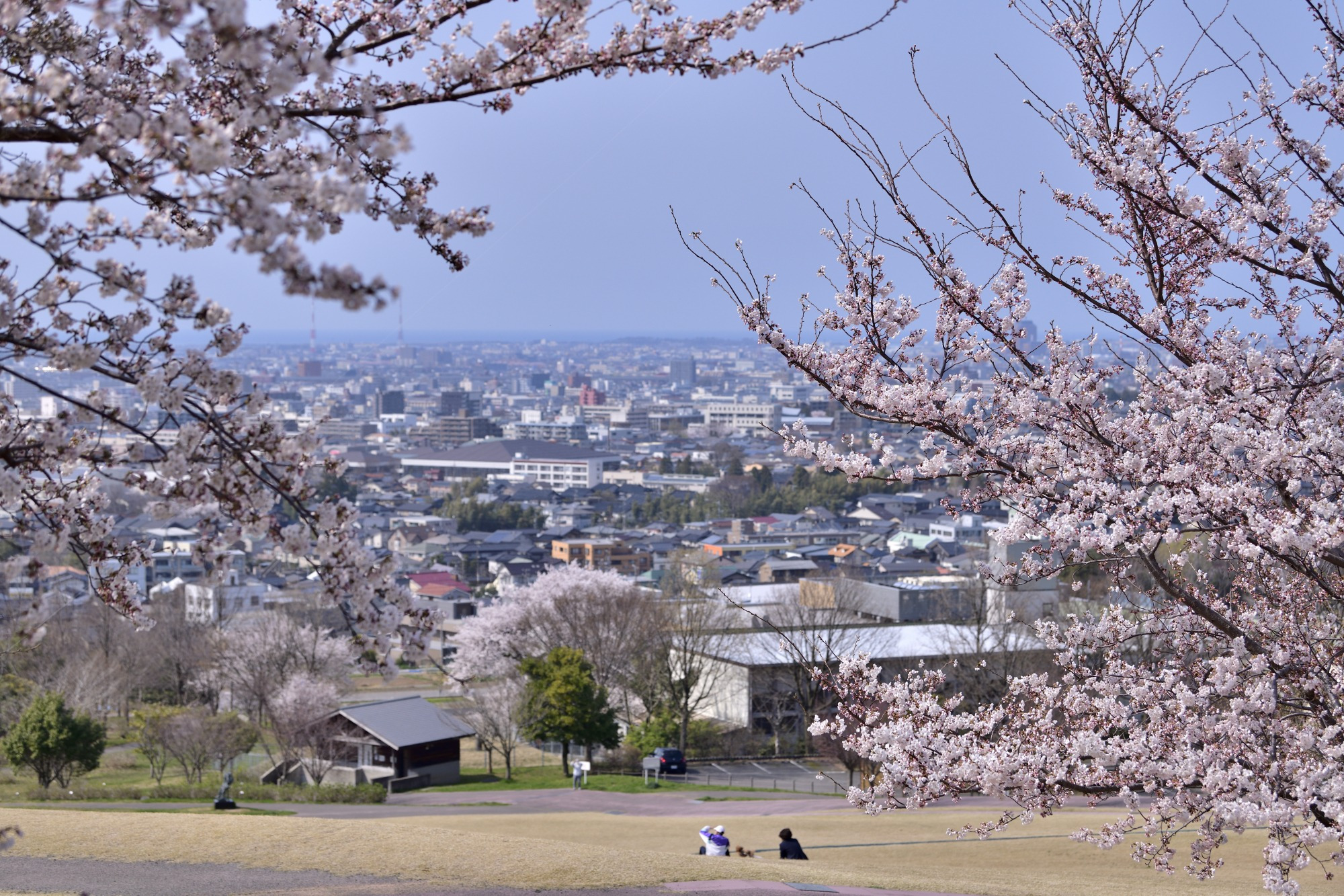 加賀市の中央に位置し、緑豊かな加賀平野、名峰「白山」を一望でき、園内の至るところに美しい桜が咲き誇る公園です!
