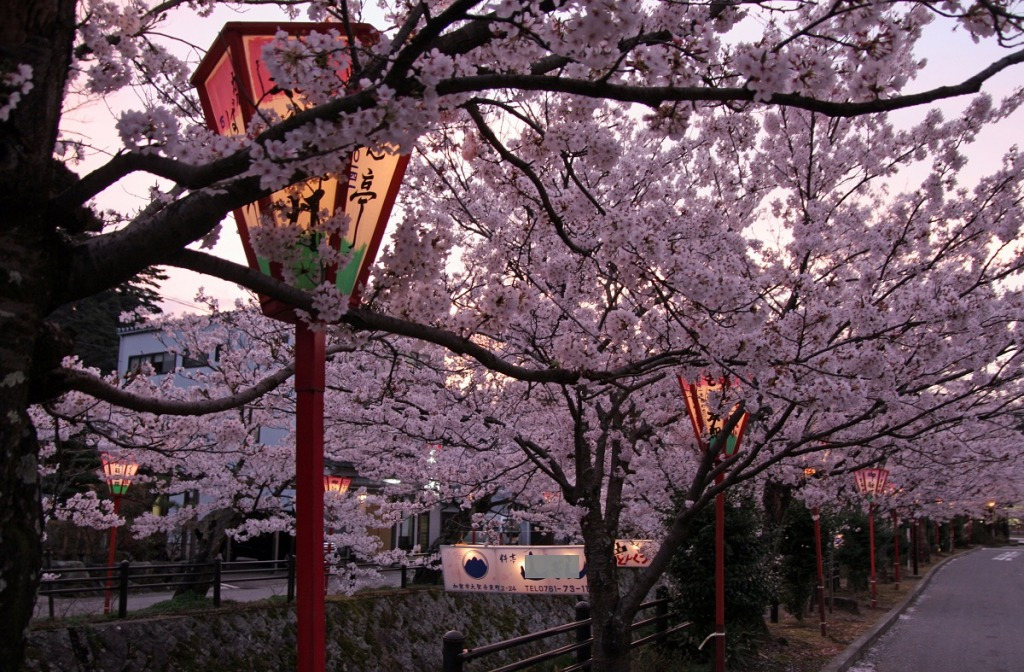 開花中の夜間はぼんぼりも灯され、川のせせらぎの音とともに、幻想的な雰囲気の中お花見が楽しめます^^