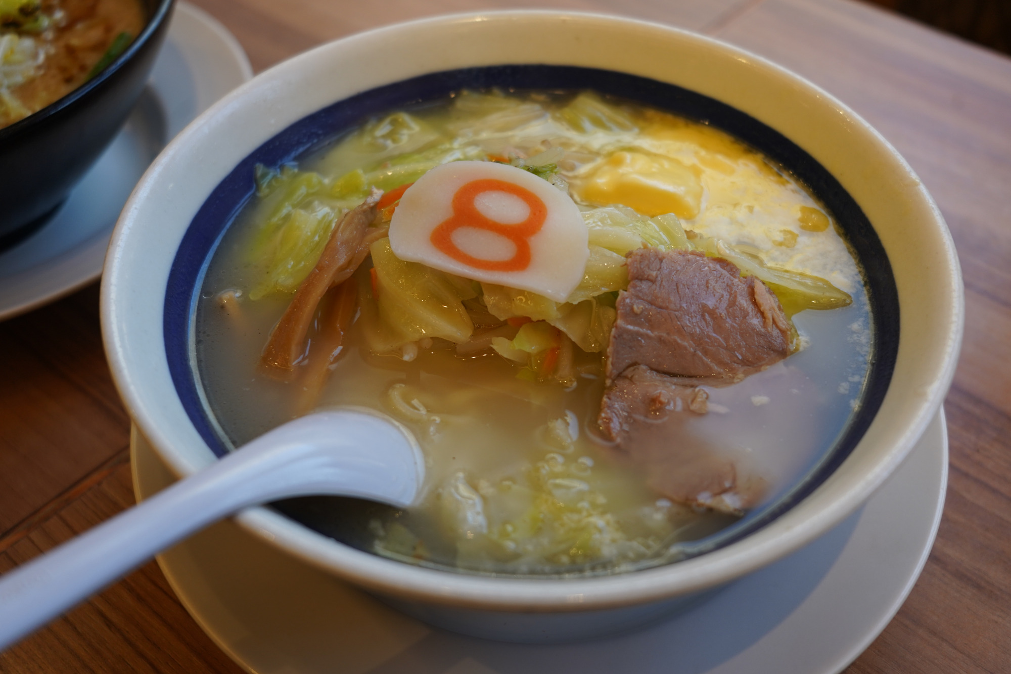 炒めた野菜を煮込むからスープに野菜の旨味がまるごと溶け込んだほっとする美味しさ。そして上にちょこんと乗っている8のかまぼこ「ハチカマ」が可愛すぎる♡