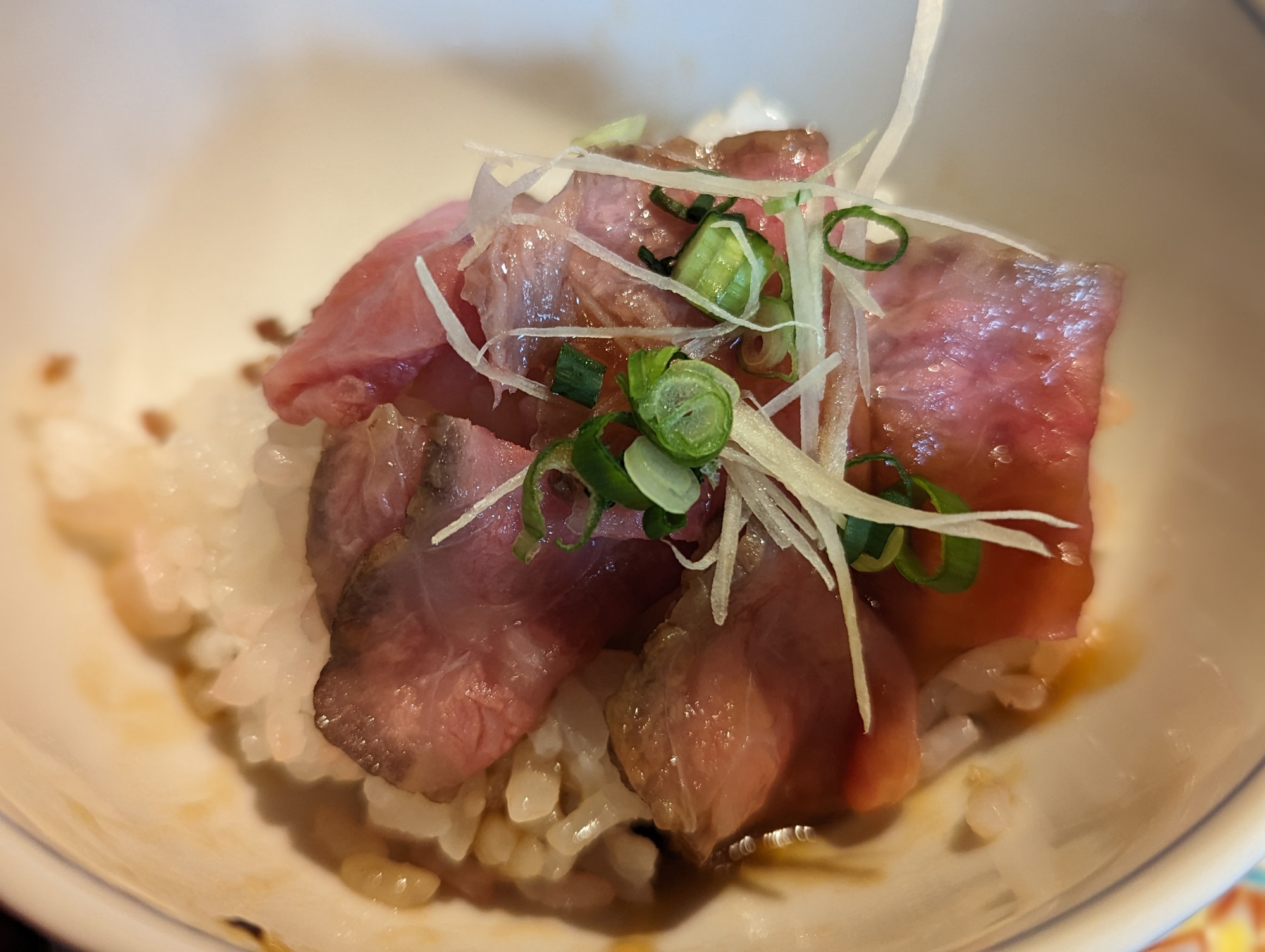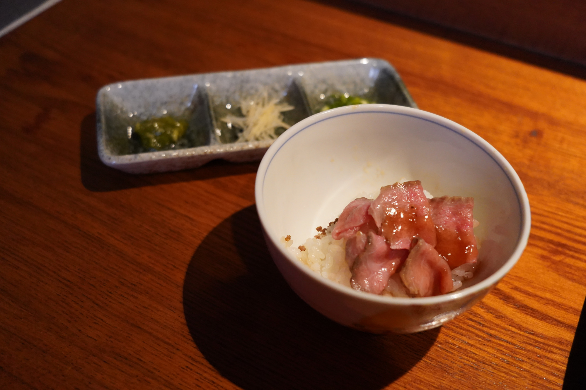 2杯目は薬味をまぶしてさっぱりと。薬味の爽やかさが通りすぎるとやってくる能登牛の甘み。