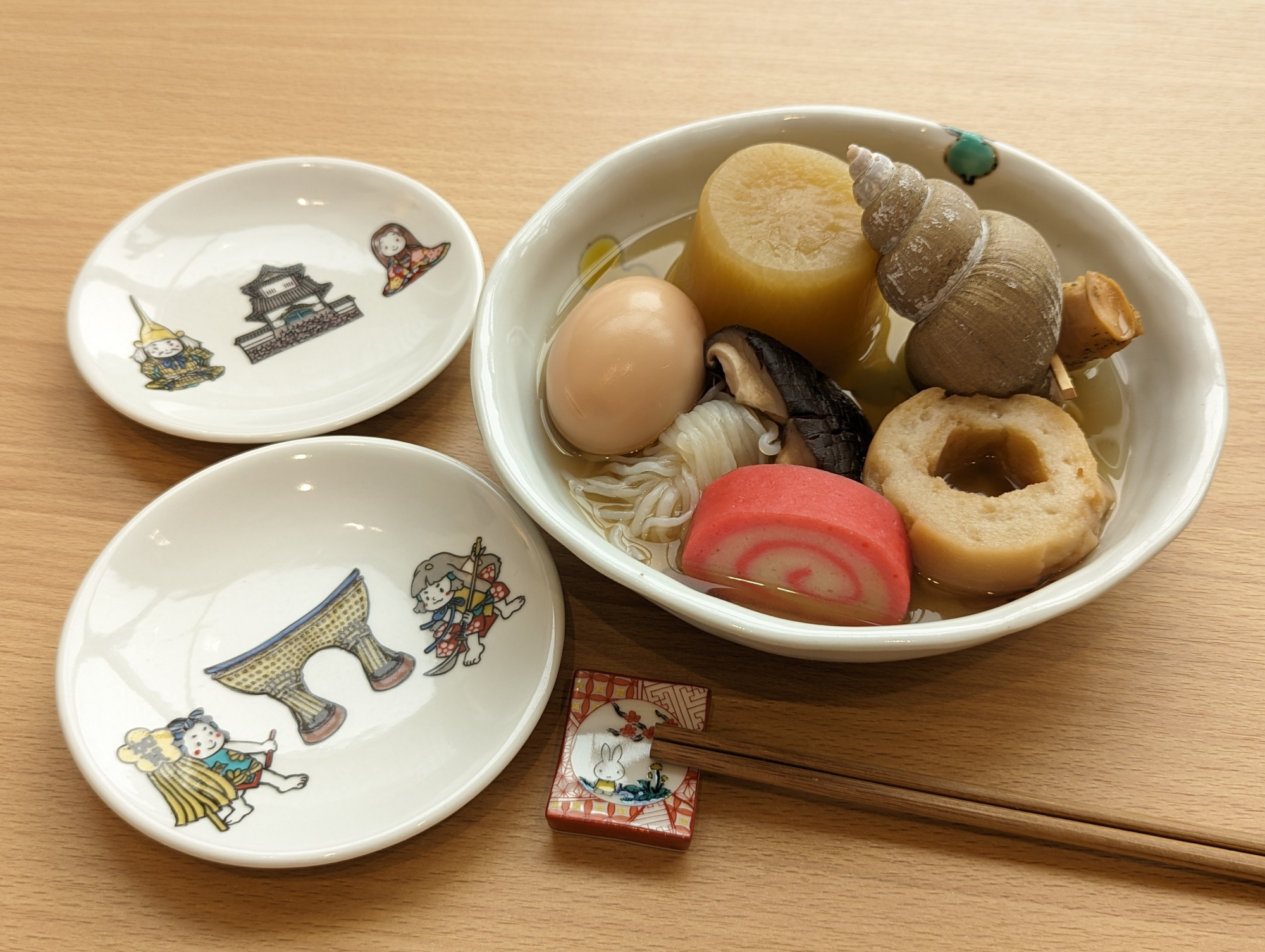 大根・玉子・糸こんにゃく・百万石椎茸・赤巻・小車麩・バイ貝。