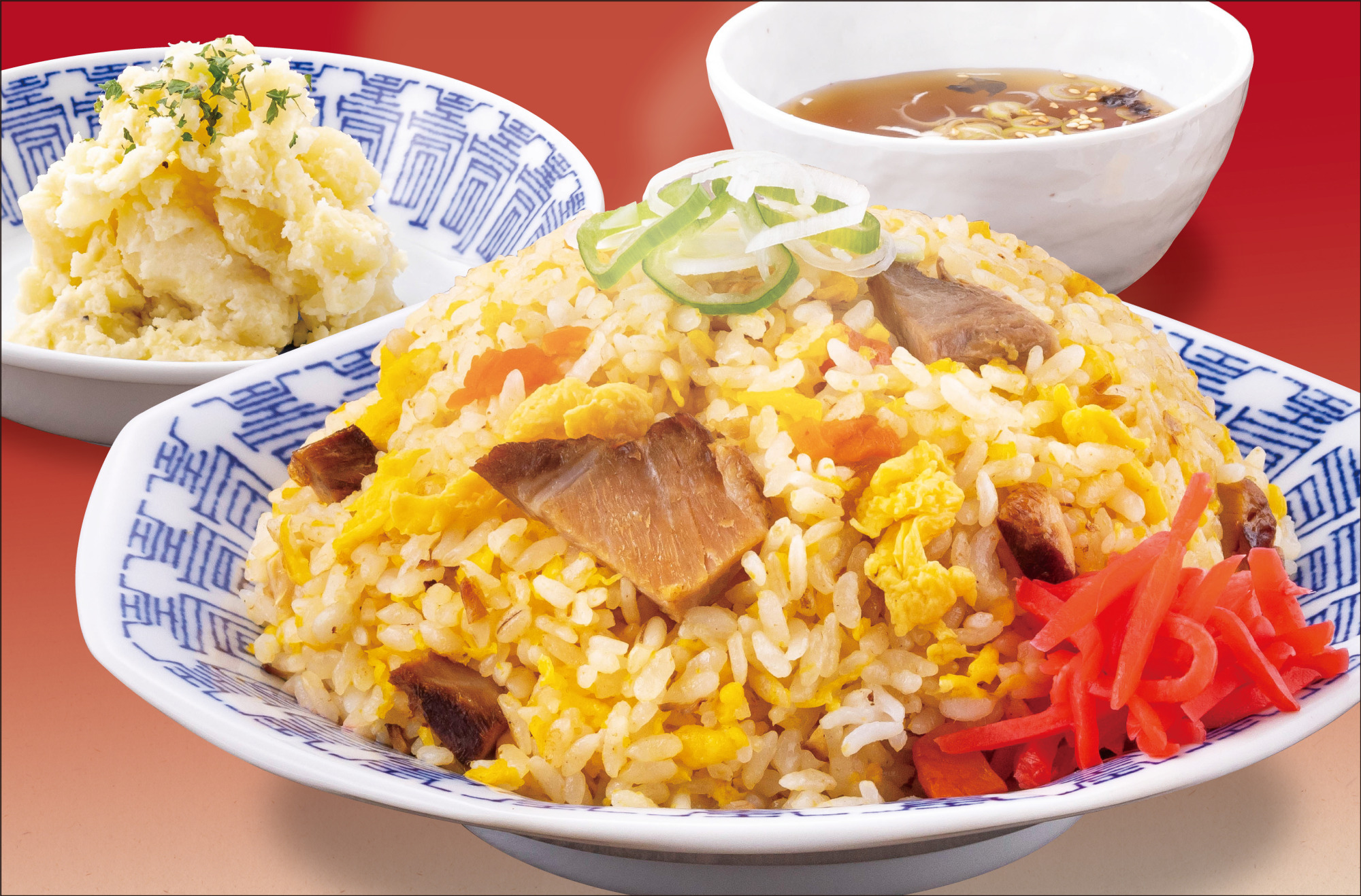 同店おすすめの「つねをセット」は、大きな焼き豚が入った自慢の焼きめしとゴロッとしたポテサラにスープが付き、ボリューム満点なセットです♪