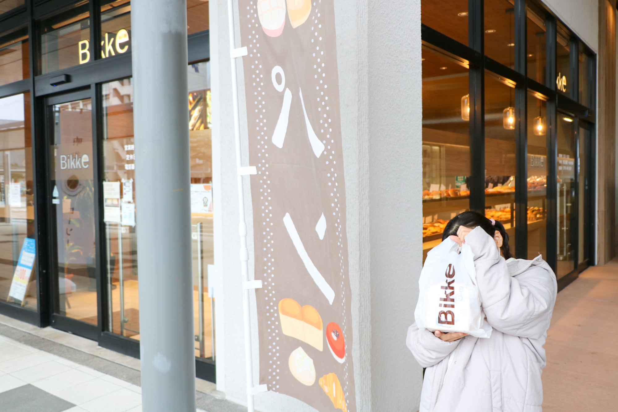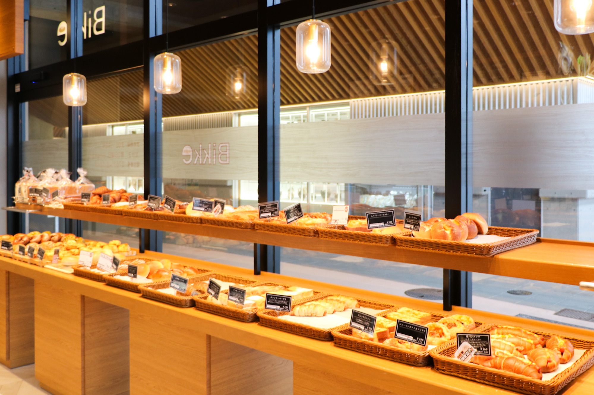 小松駅西口に面する『Bikke 小松駅店』には、サンドイッチやベーグルなど、焼きたてパンがたくさん並び、香ばしい匂いが食欲をそそります!