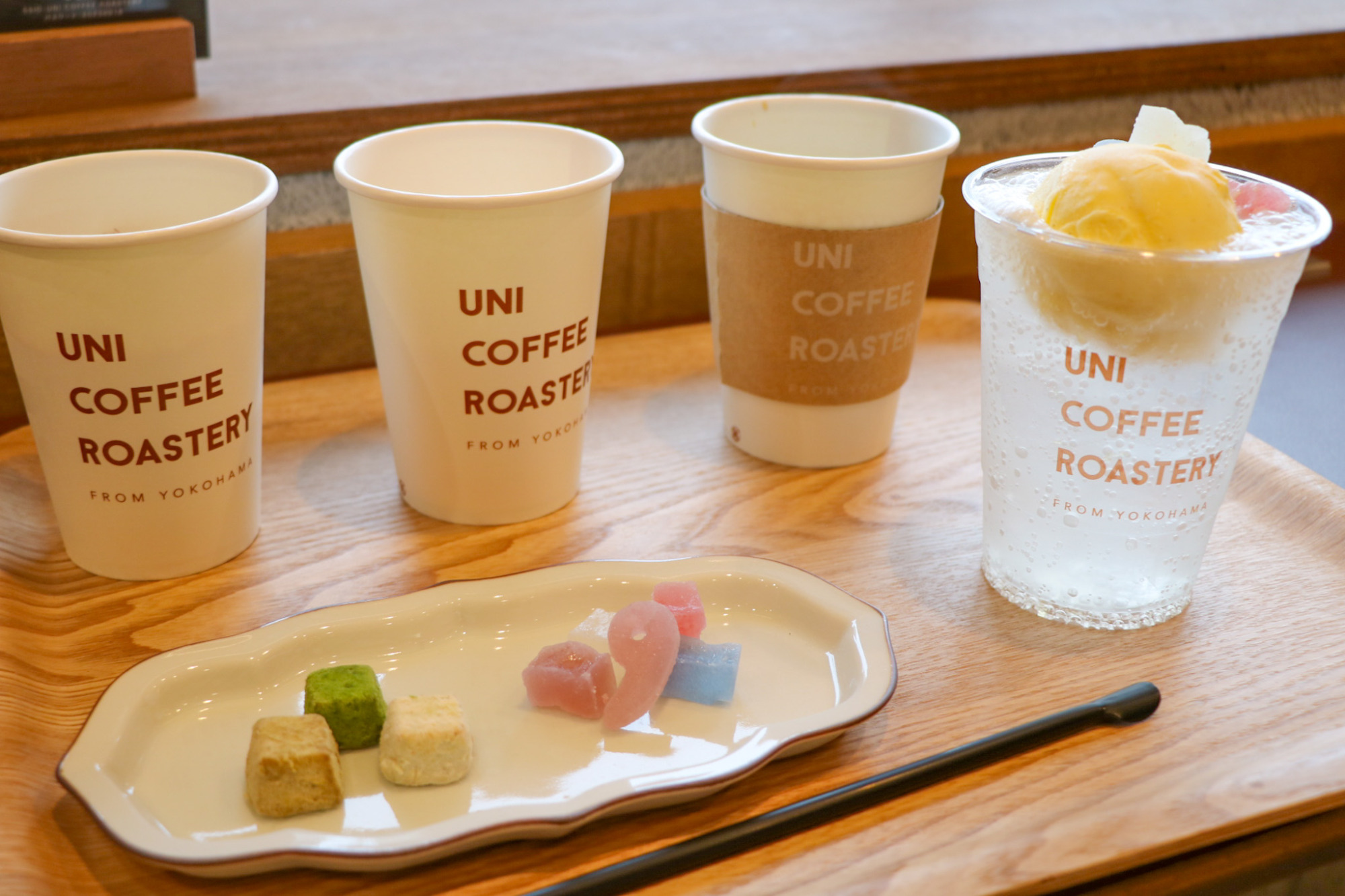 石川小松店限定ドリンクの「横浜サイダーのクリームソーダ-ishikaを添えて」は、横浜発の「横浜サイダー」に、長池彩華堂の琥珀糖菓子「石華」がキラキラと添えられていて、お味はもちろん美味しく、彩りもポップで食感も楽しいドリンクでした。