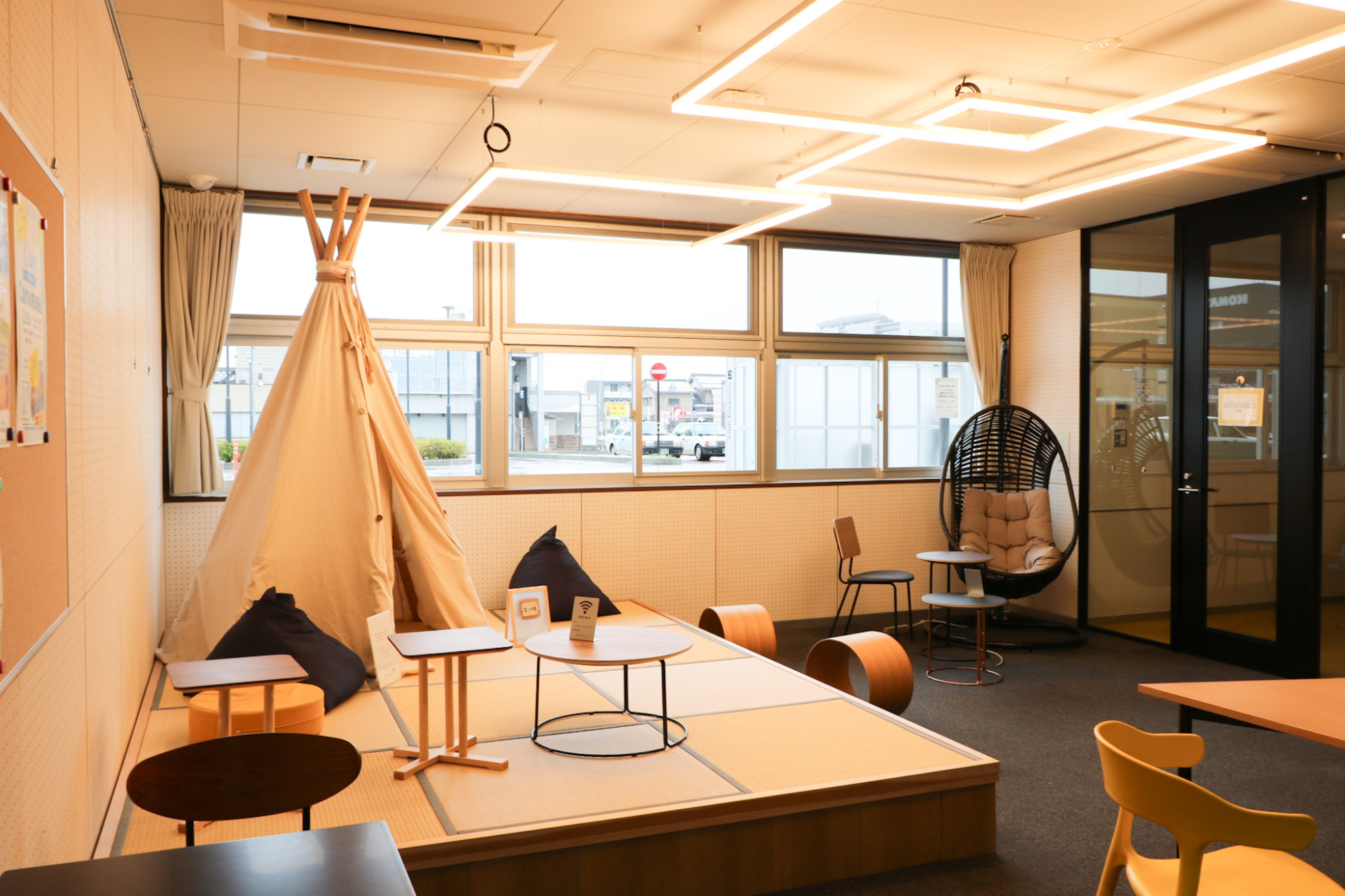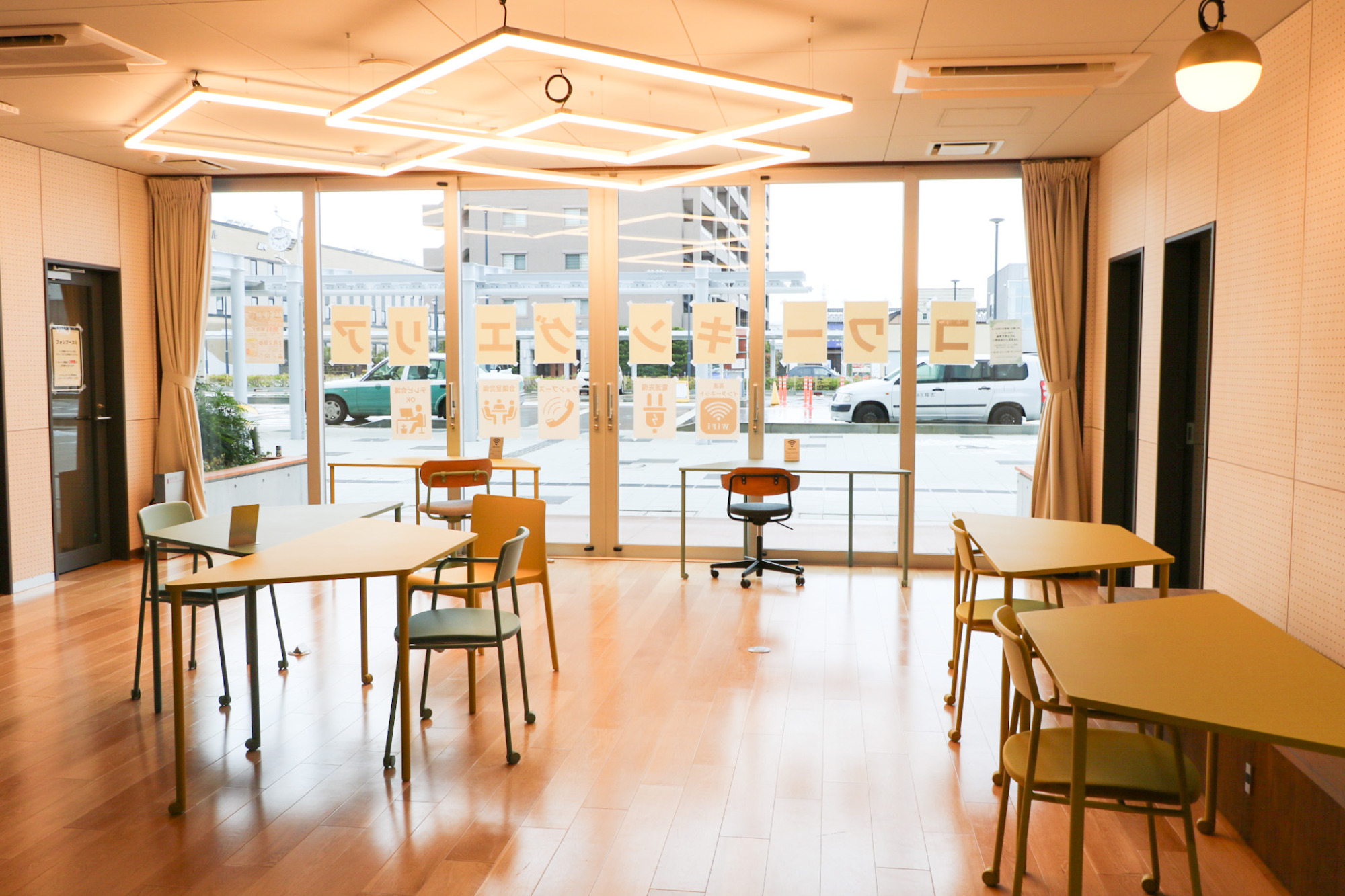 小松市のビジネスパーソンや学生だけでなく、市外の方々との交流を促し、小松市の活性化へ繋げることも目標とされており、まさに新幹線駅にふさわしいスペースですね。