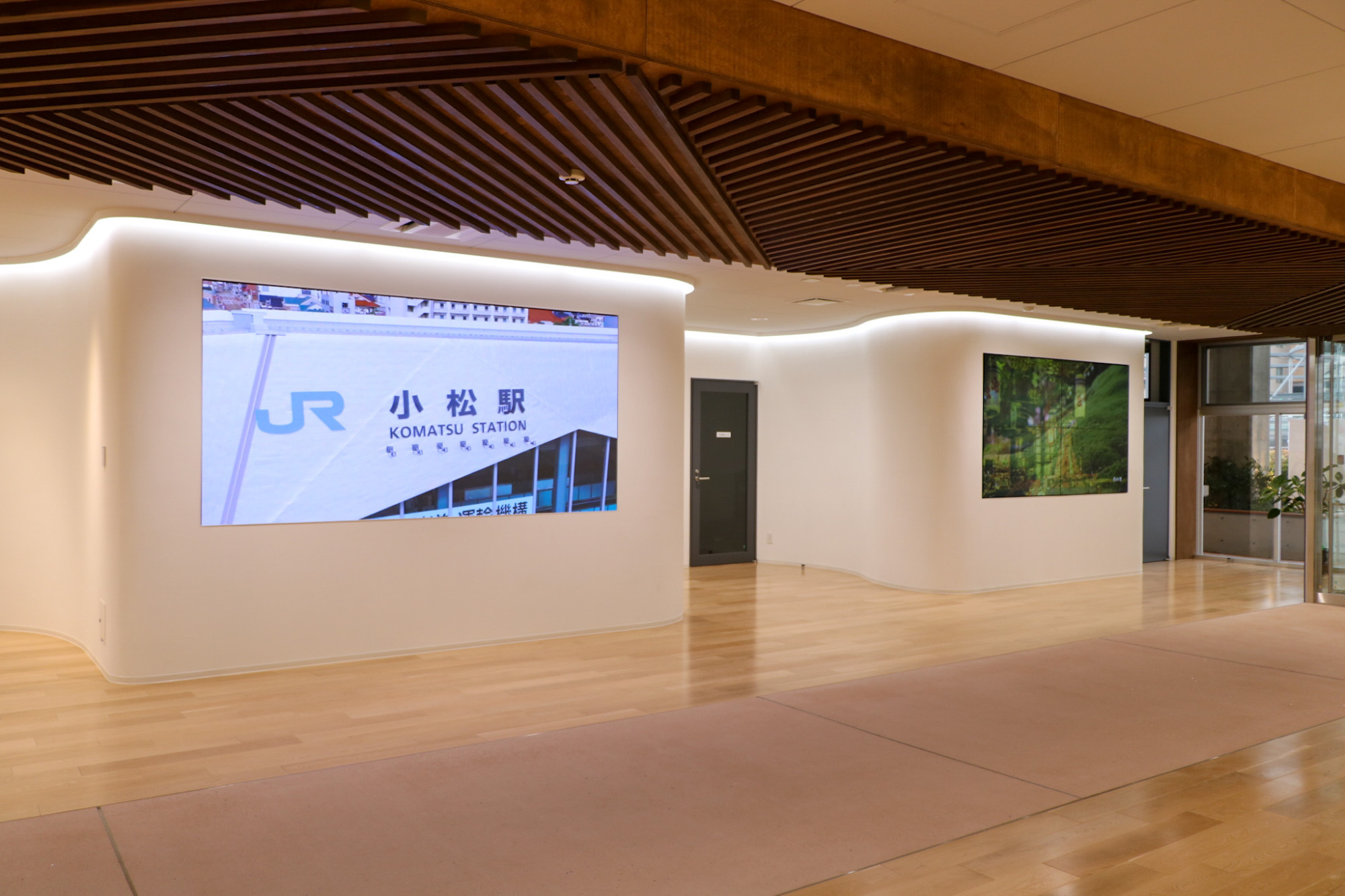 また、大型モニターでは小松のさまざまな情報が発信され、電車やバスの待合時間にも小松の魅力に触れることができます。