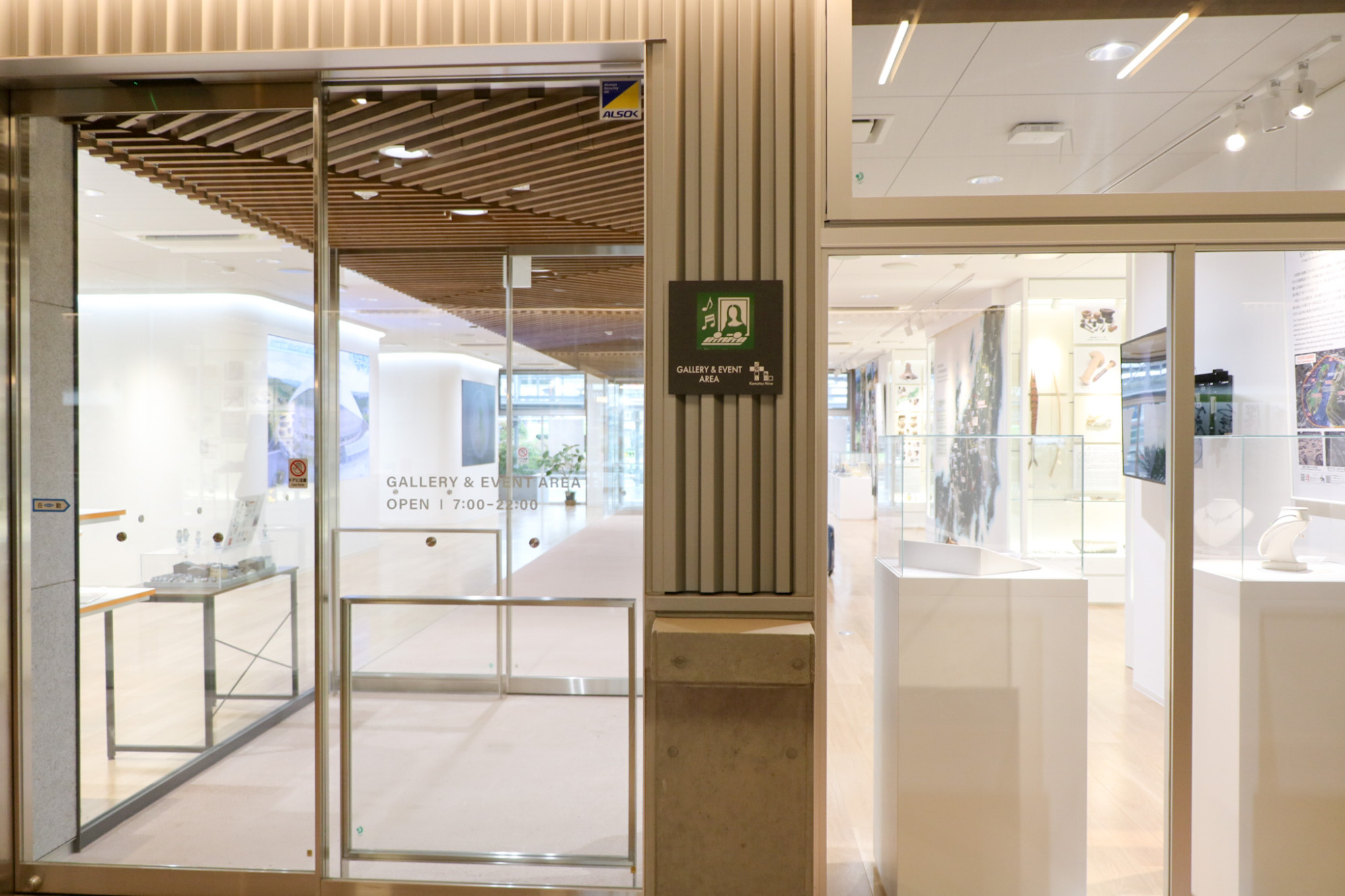 こまつものづくりと交流の源流「八日市地方遺跡」の出土品を展示するほか 、レンタルスペースとしても利用できる『GALLERY&EVENT AREA』。
