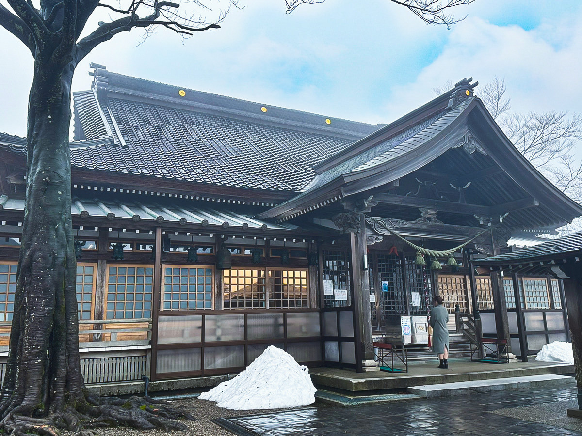 残念ながら今回は雪が積もっている時期だったので生花ではありませんでしたが、一面に紫陽花が浮かんでいる時期などはとても華やかで、花手水を目的に訪れる方も多くいらっしゃるとか。