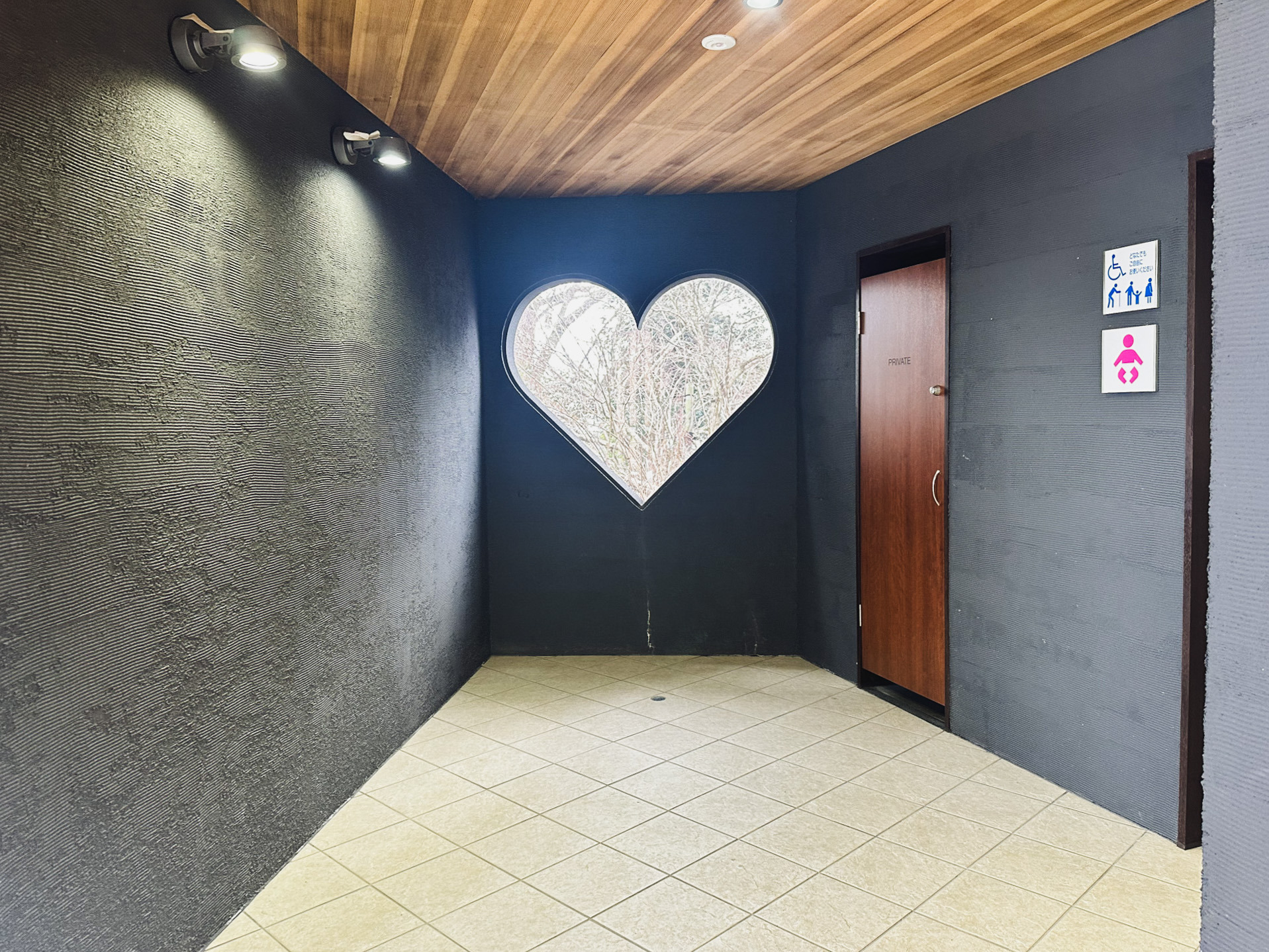 本堂左手にあるトイレに向かうと見えてくるのは、ハート型の窓♡