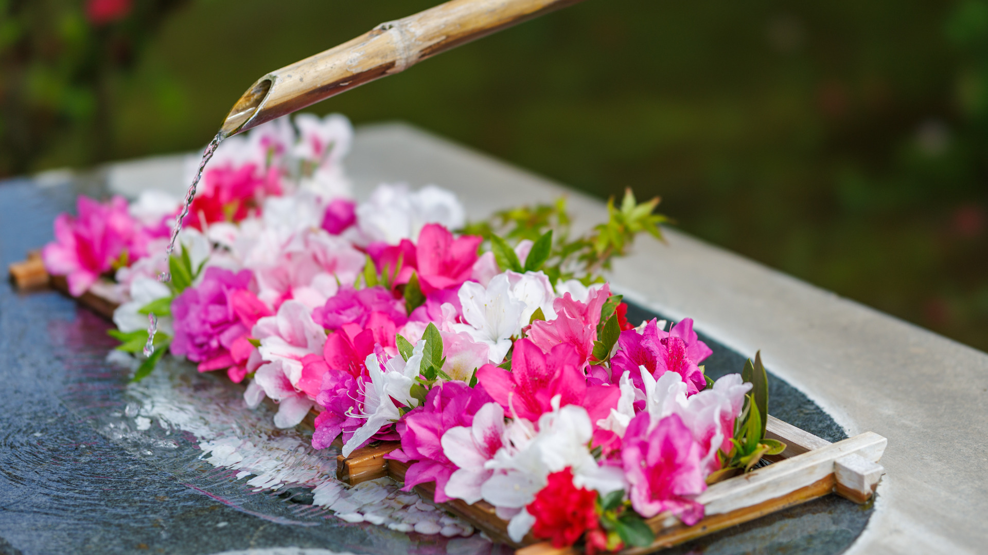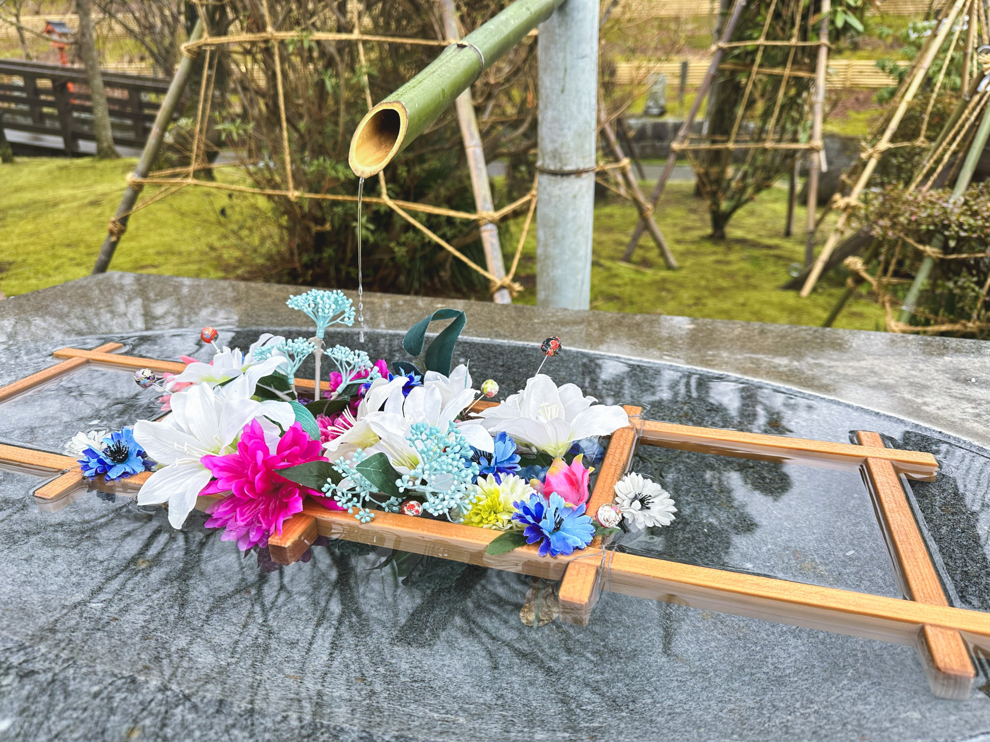 手水鉢にはお花が浮かんでいてSNS映え間違いナシです!