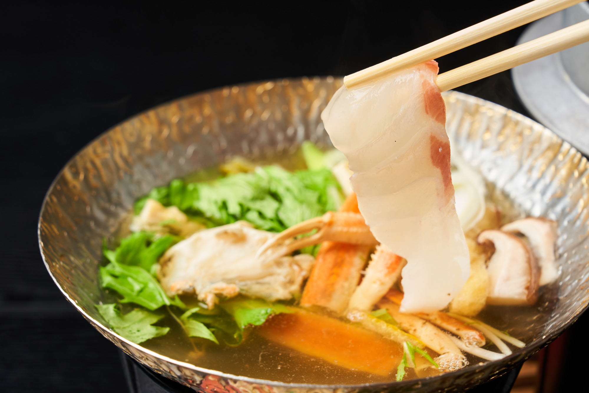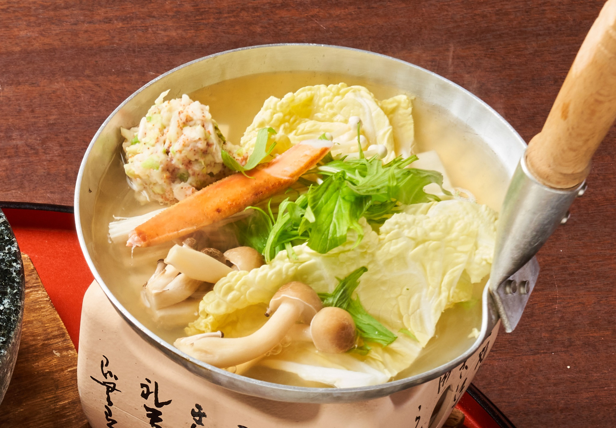 カニの身を入れ、カニの出汁をベースにした魚介鍋は、冬は鰤、春は鯛など季節の美味しい鮮魚が堪能でき、ついつい一緒にお酒が進んでしまいそうな美味しさです。
