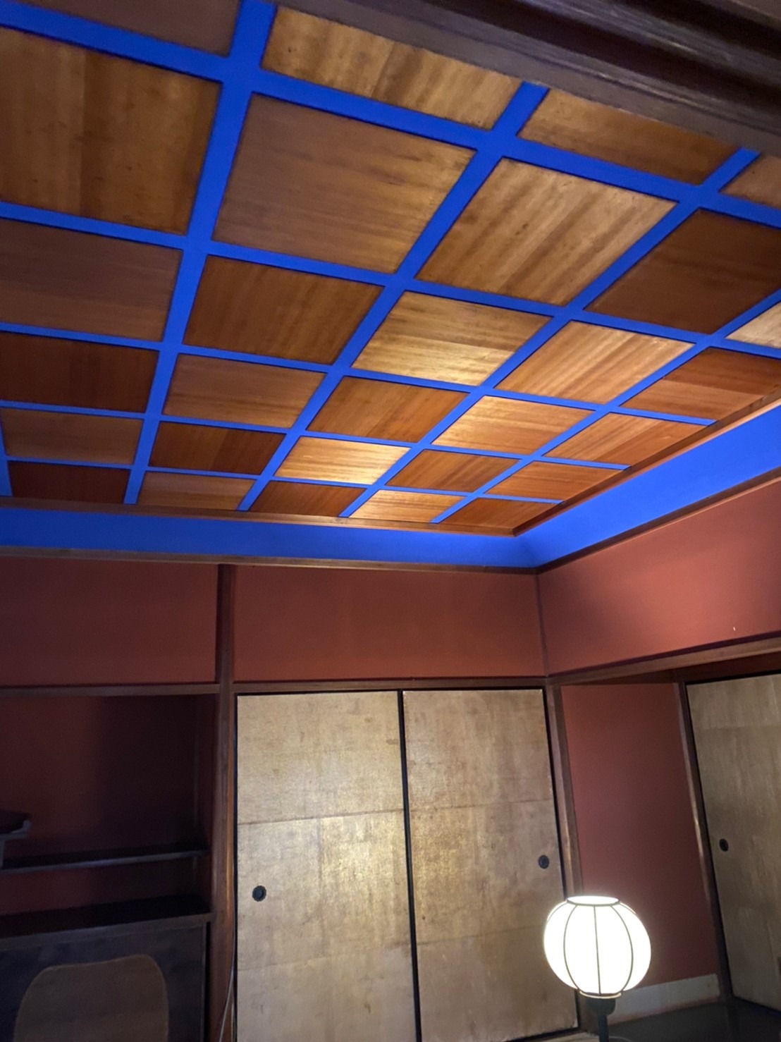群青の間は、天井の群青から壁に朱を用いた色鮮やかなお部屋で、とても美しいです♪