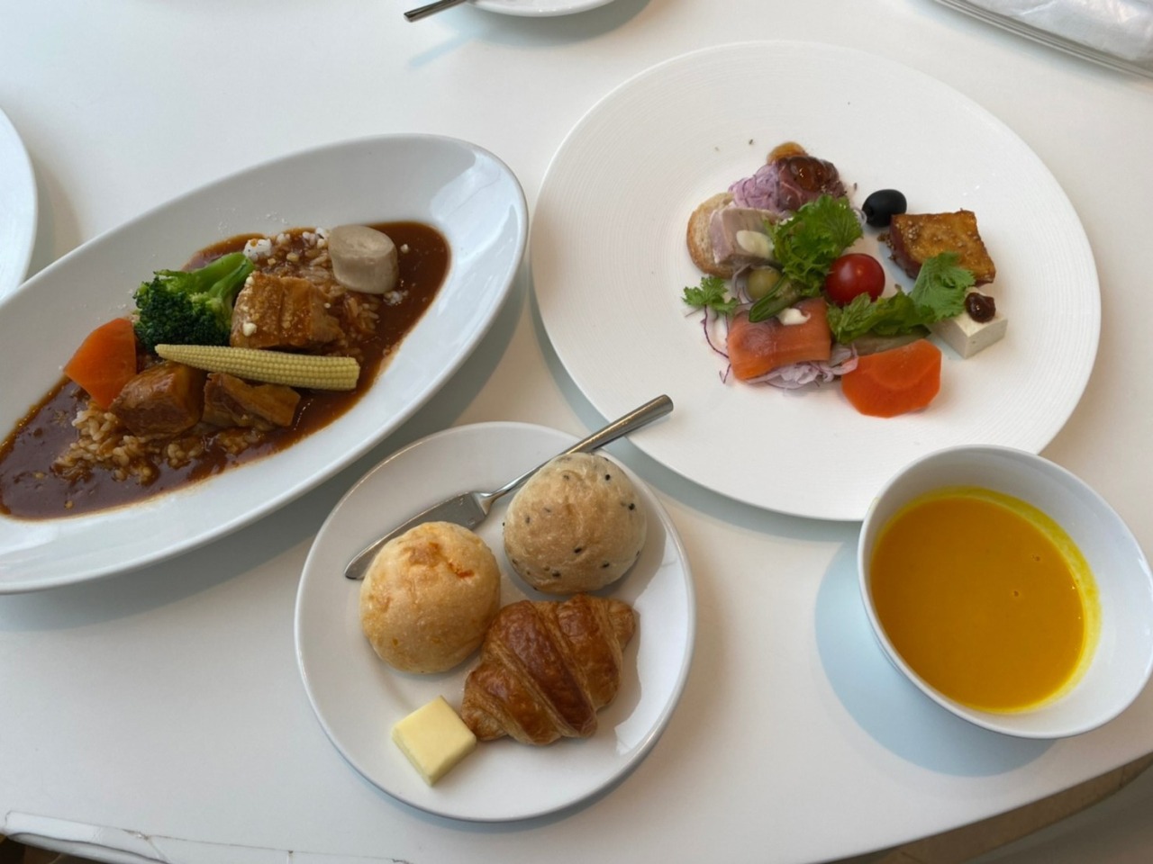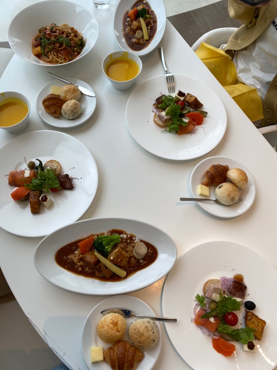 メイン料理は、「オイルソースパスタ」「トマトソースパスタ」「能登豚ミートライス」の3つから選びました。