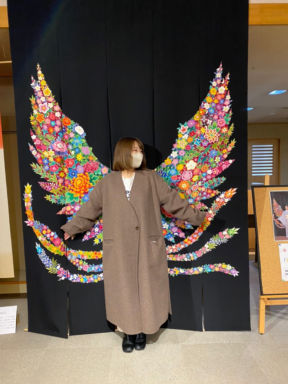 羽根が生えているように見える「花嫁のれん」の前でパシャリ!