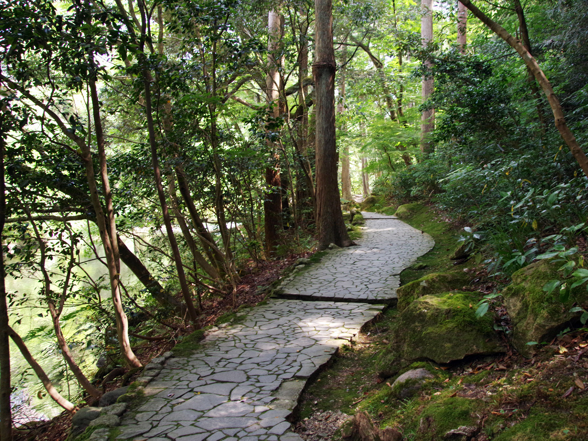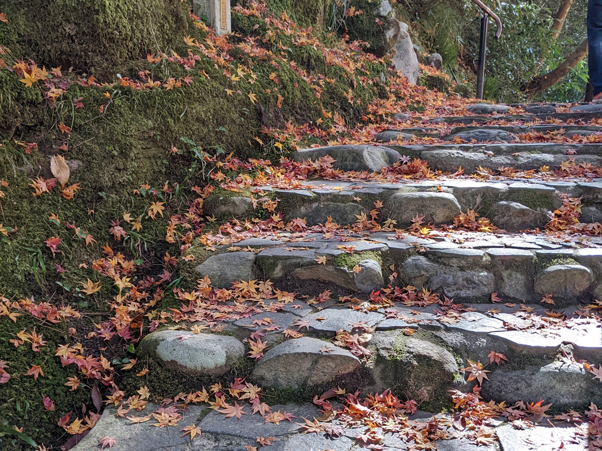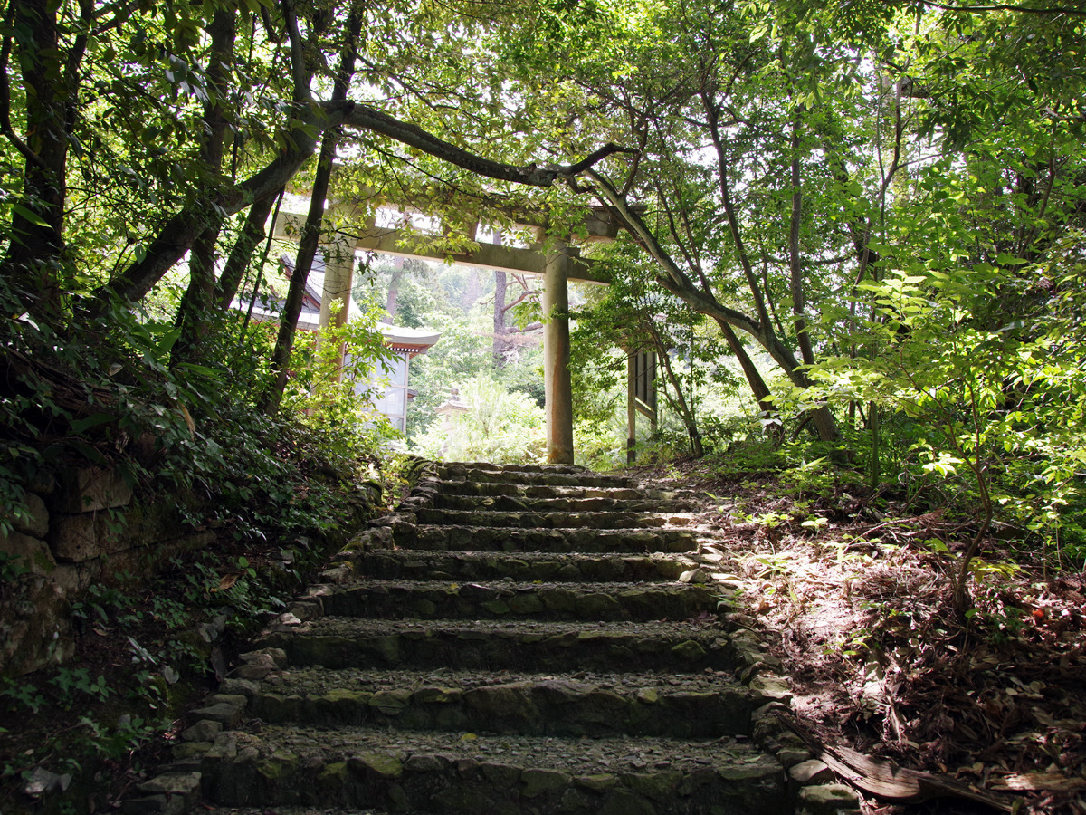 ゆるやかな石の階段は、全部で130段あまり。5分かからないほどの距離です。