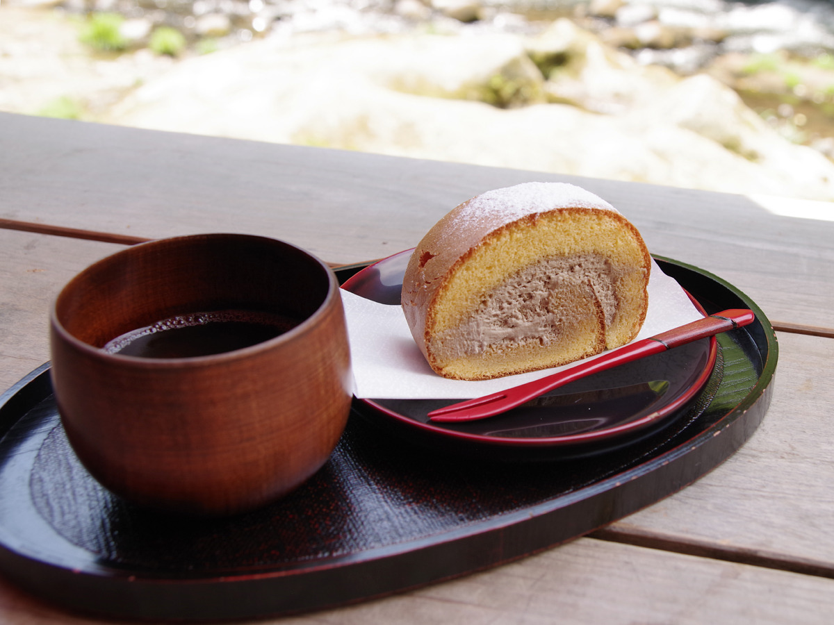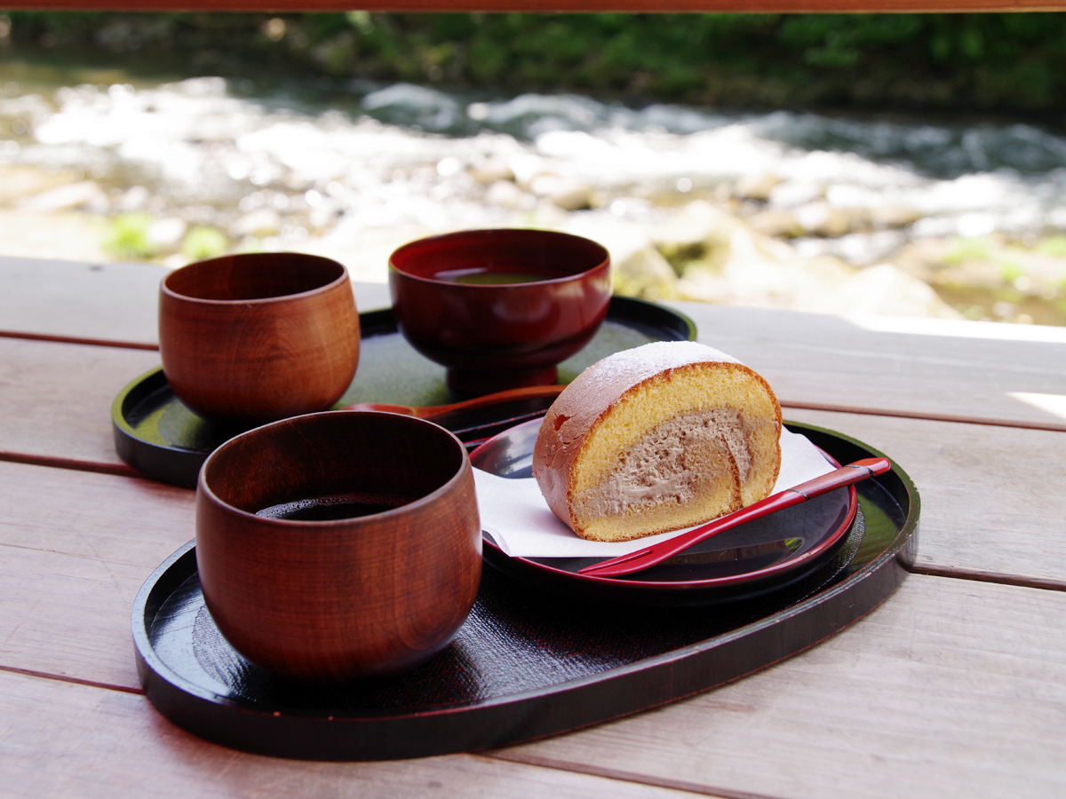 遊歩道を散策しながら、奇岩怪石や清流、四季折々の美しい景色のほか、春から秋には川床でのスイーツを楽しむことができます。