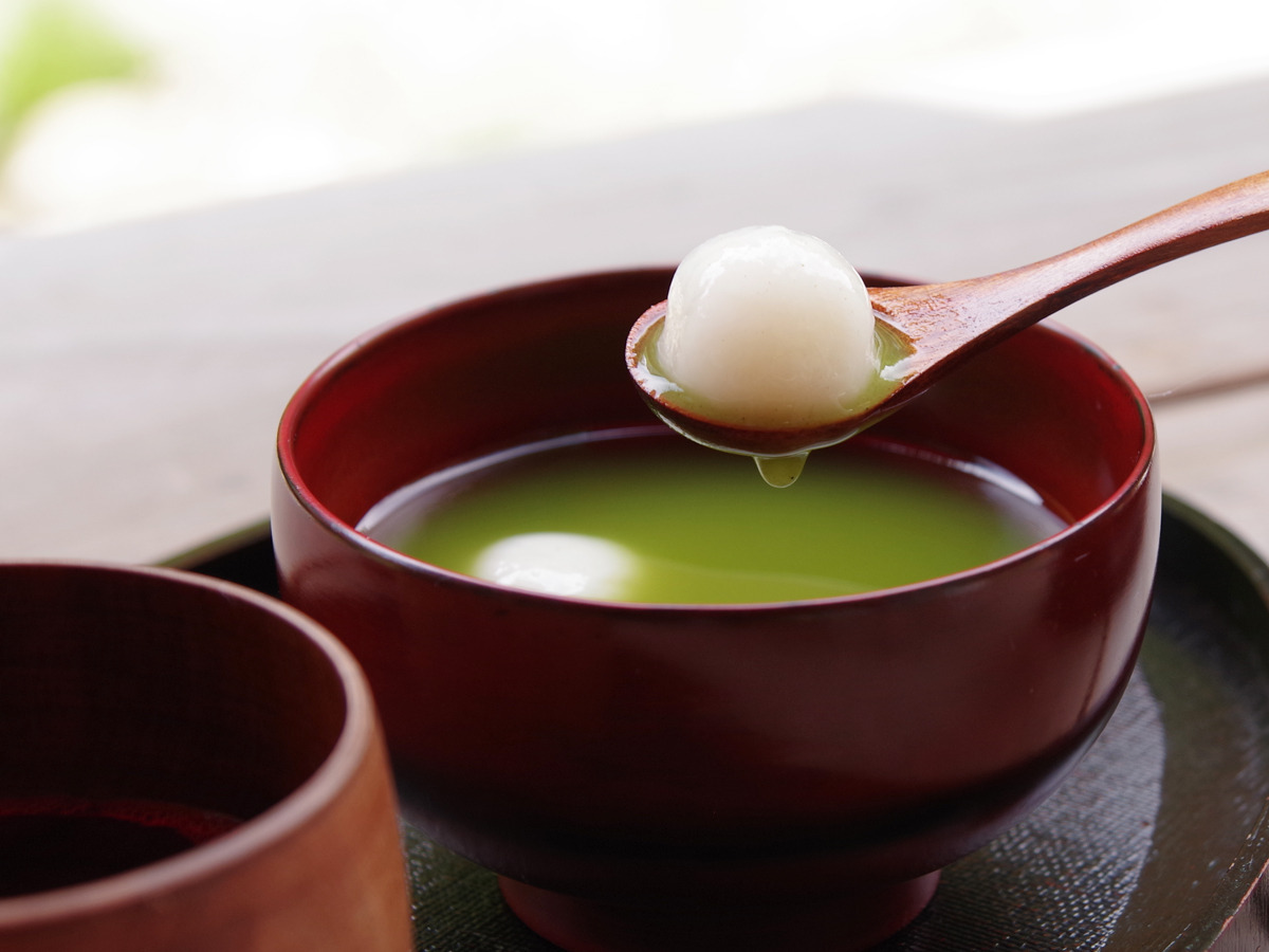 冷製抹茶しるこは、抹茶の香りが立つ上品な甘さで、2つ入った白玉はつるんとしながらも、もっちもち。