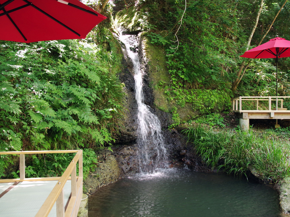 この滝を楽しみながら、川床でのんびりするのも最高の時間です。