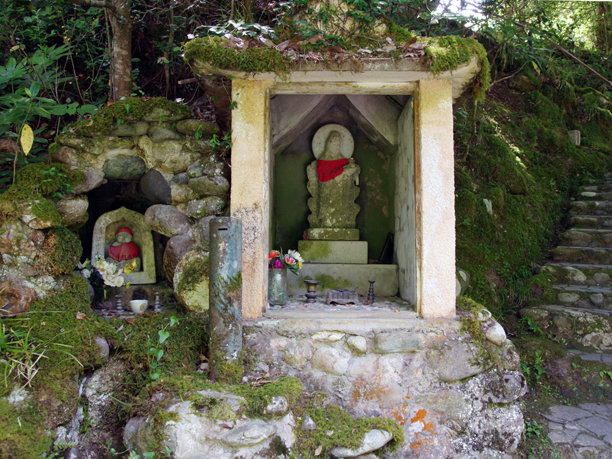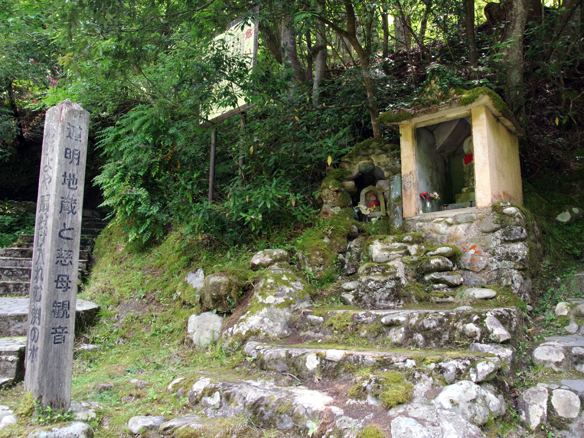 美しい自然に囲まれた中で、苔むし静かに佇む道明地蔵は、心を癒し安らぎを与えてくれる存在。