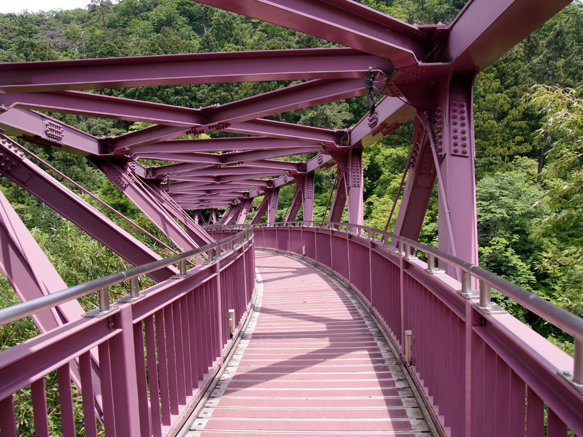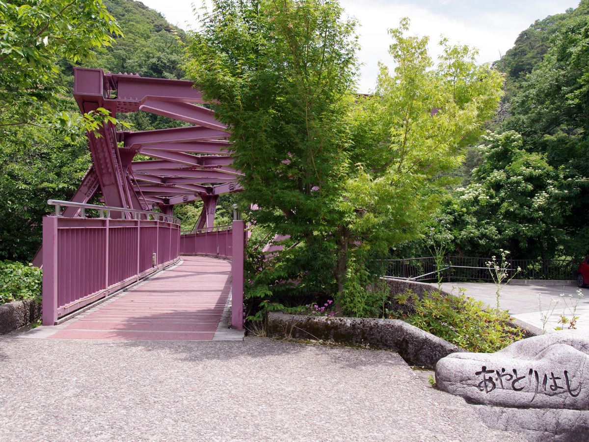 S字型の斬新なデザインの橋で、鶴仙渓のシンボル的な存在のあやとりはし。