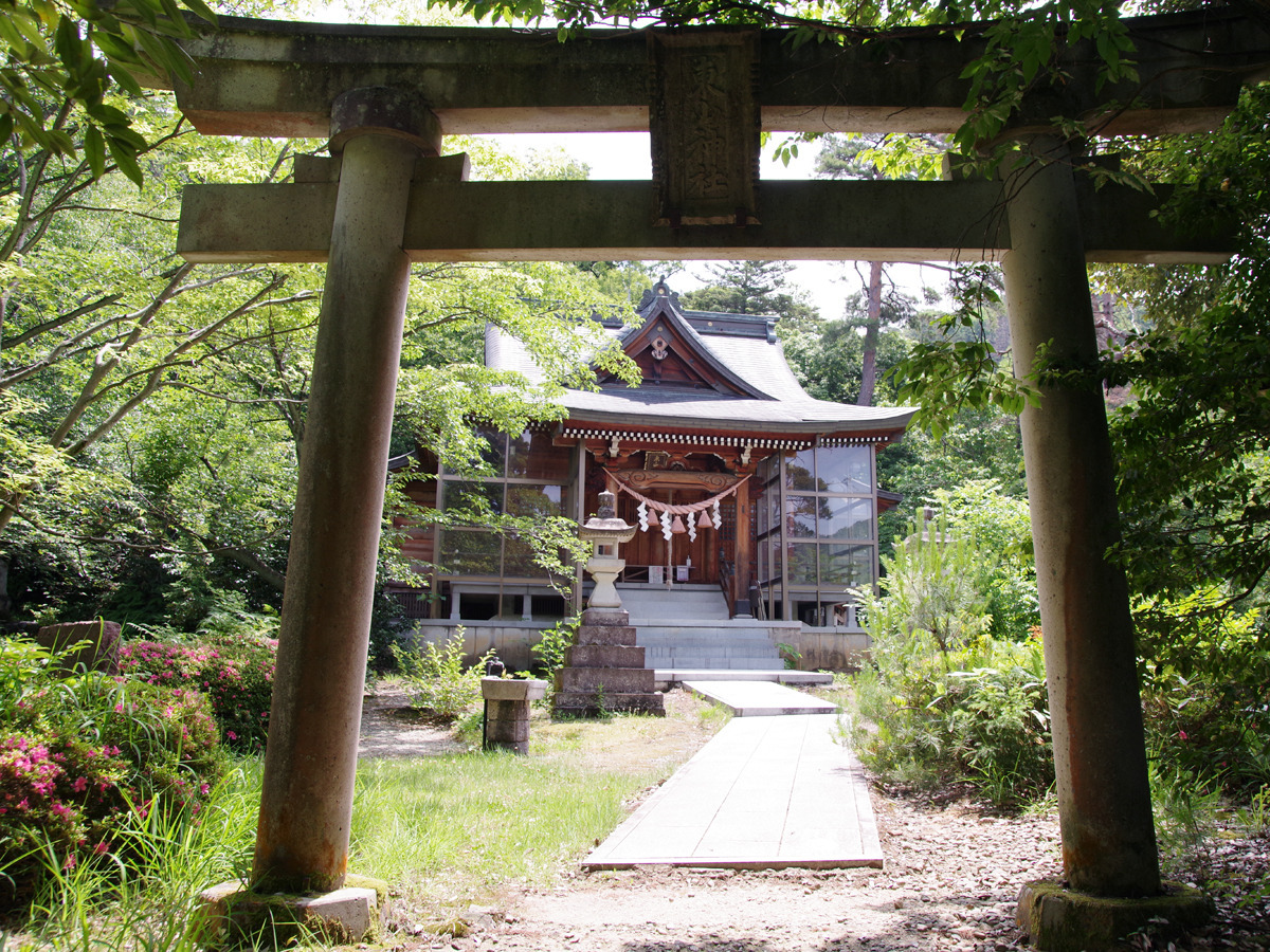 東山神社へは、黒谷橋のたもと、芭蕉堂がある場所から参道を少し上ります。