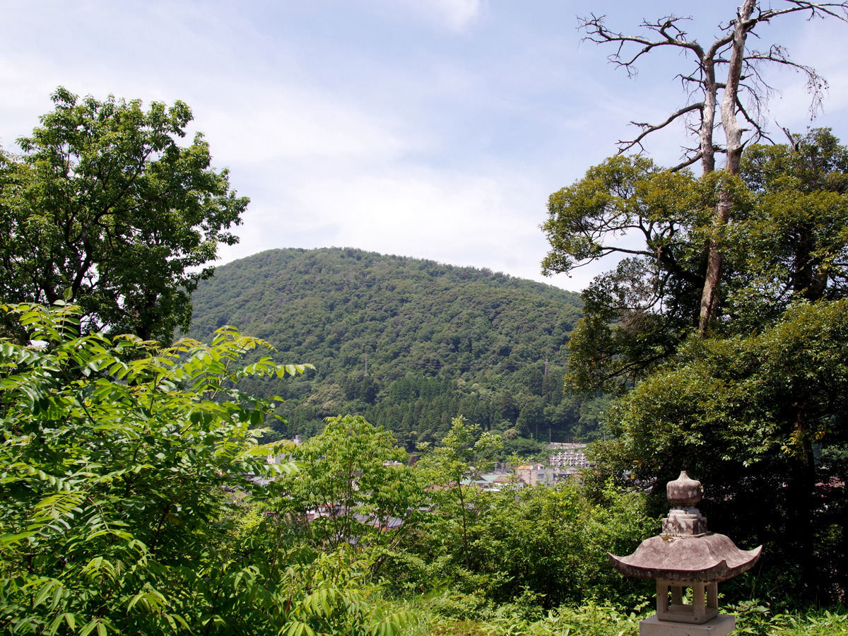 こぢんまりとしながらも、手入れされた神社の前からは、山中温泉の町が遠くに見えました。