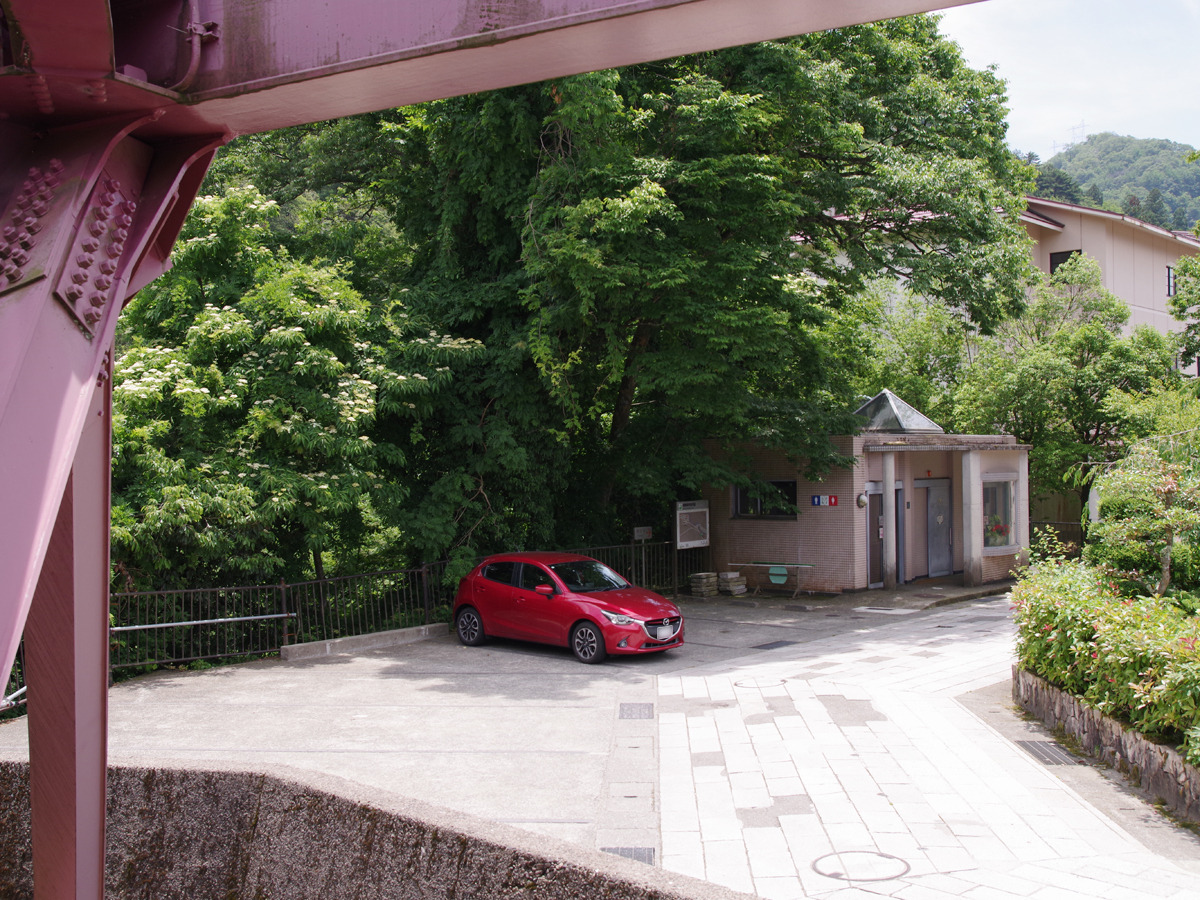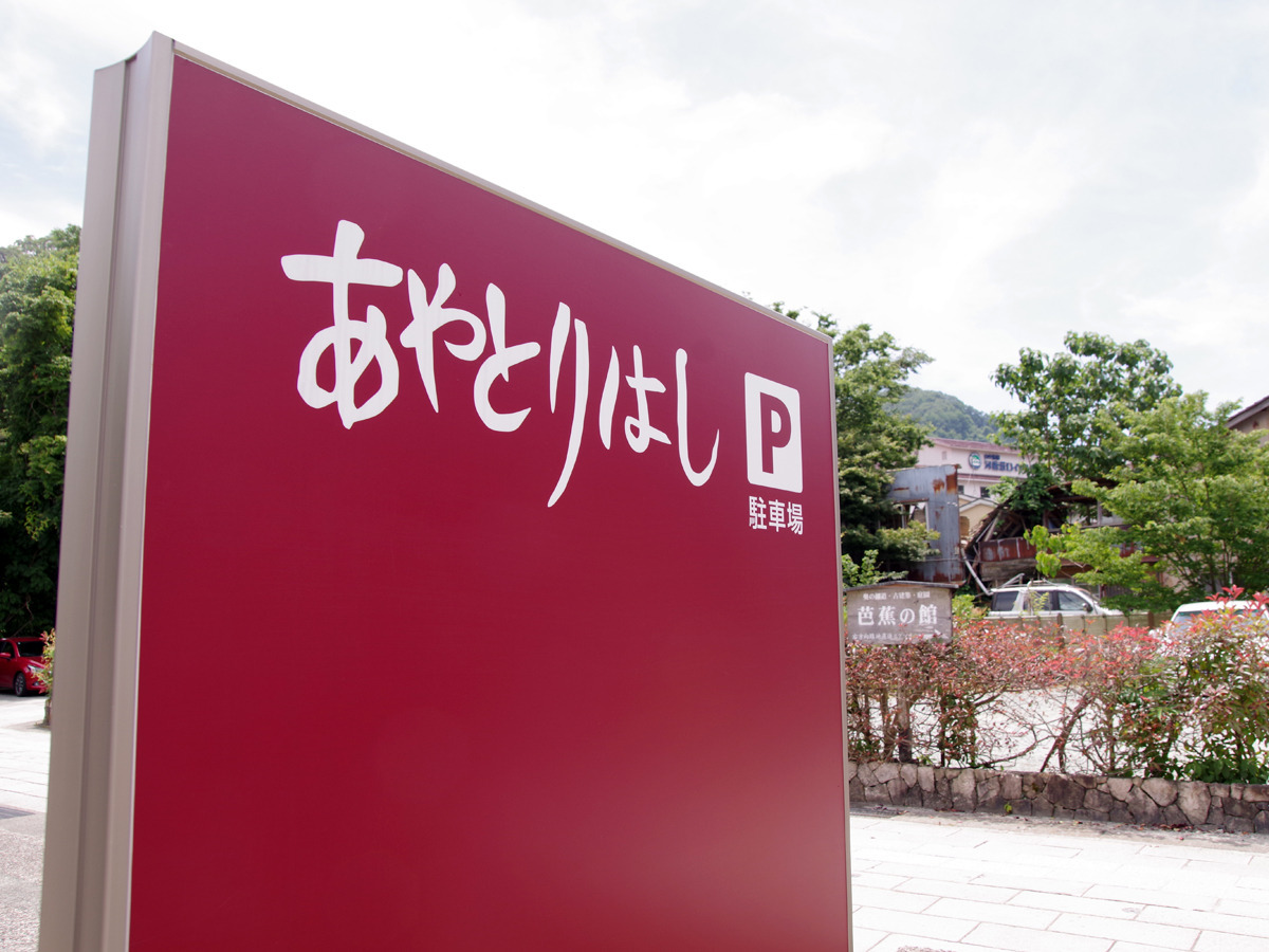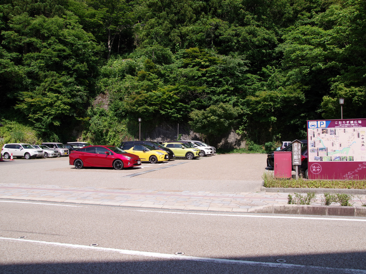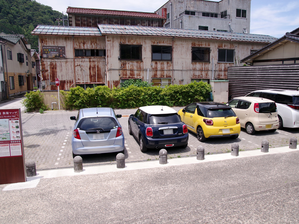 山中温泉メインストリートのゆげ街道沿いにあり、乗用車22台、大型車2台分の駐車スペースがあります。