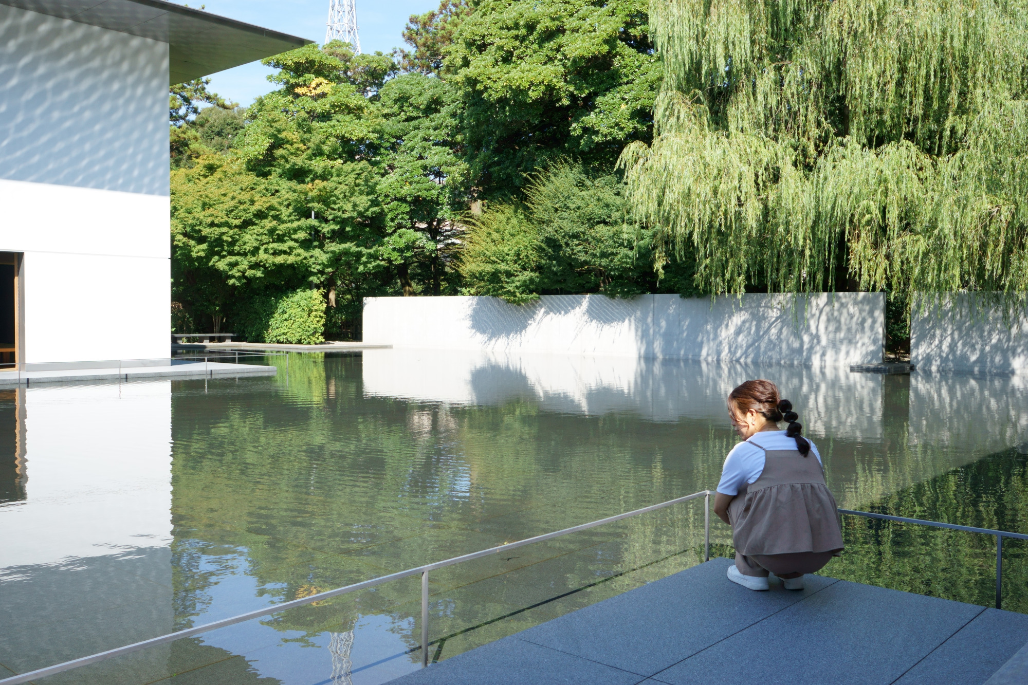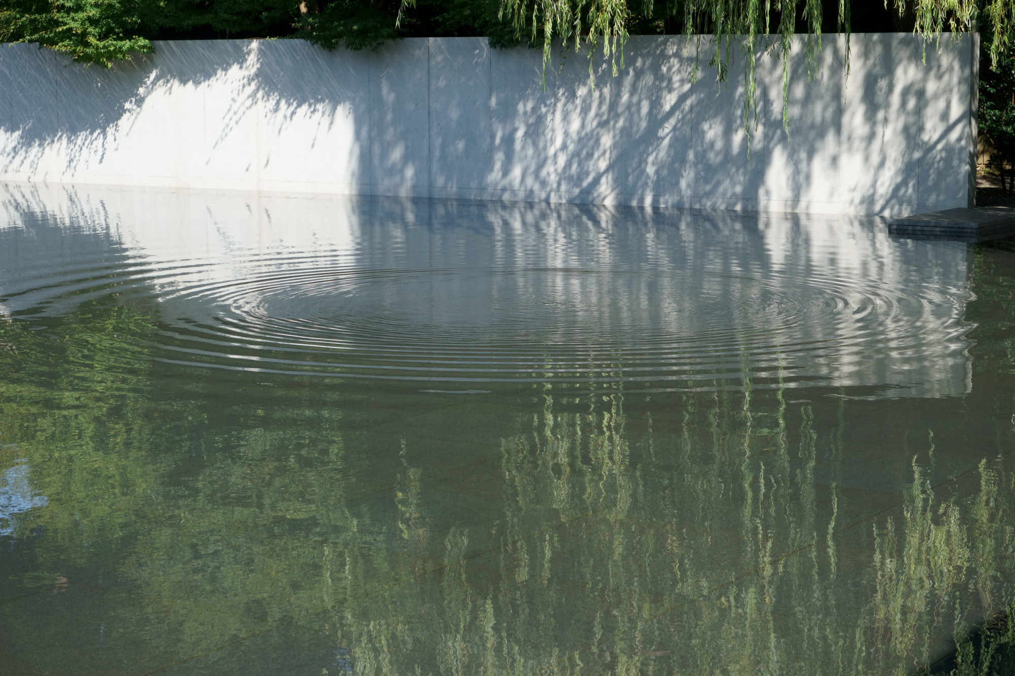 そう思っていると、時折、水面に波が立ちます。定期的に中央辺りから波紋が広がって仕掛けになっていて、つい見とれてしまいます。静謐ななかに計算され尽くした小さなノイズ。まるで現代アートのようです。