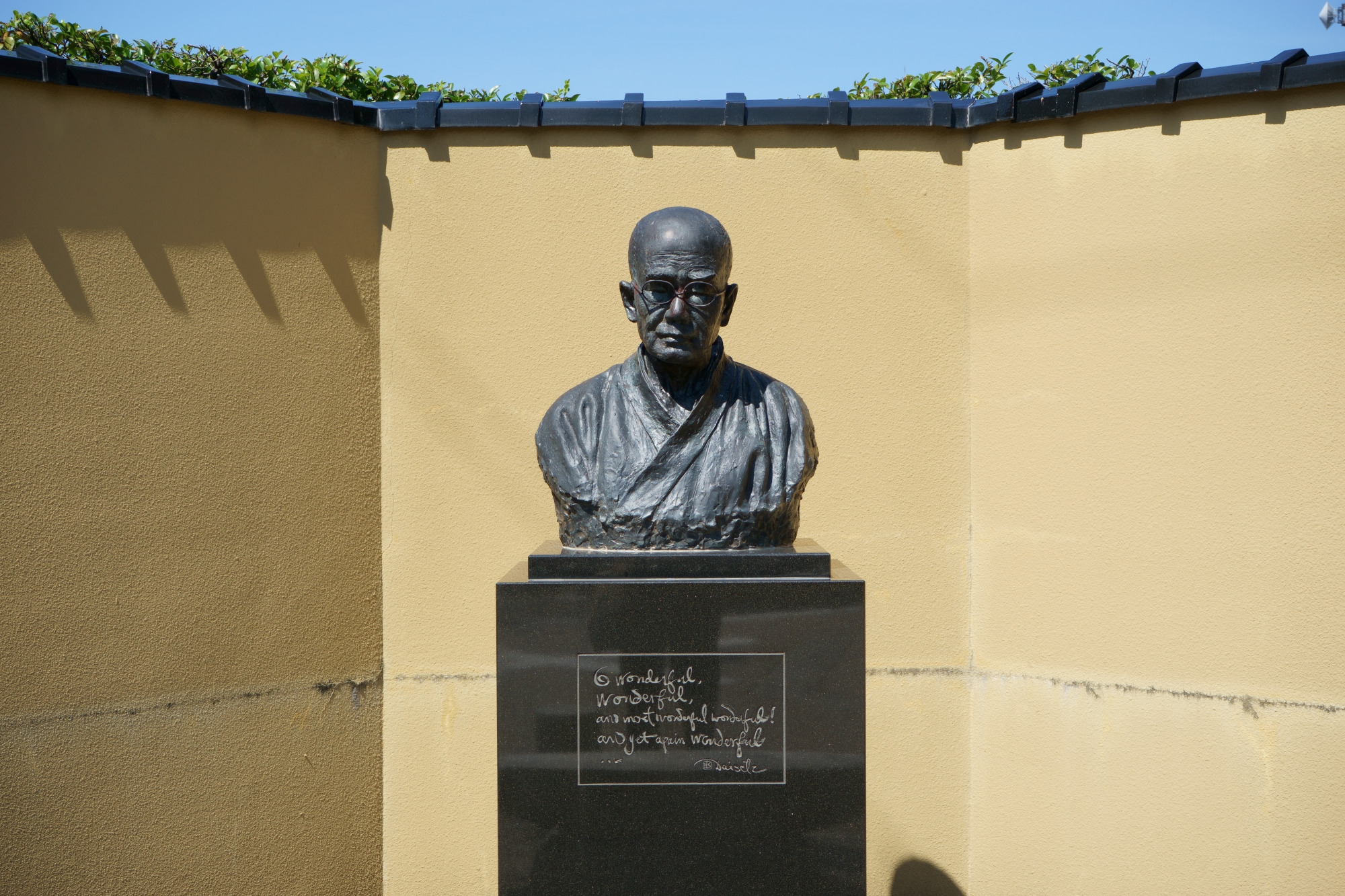 胸像の下に書かれているのは、大拙が掛け軸にしたためていた言葉です。